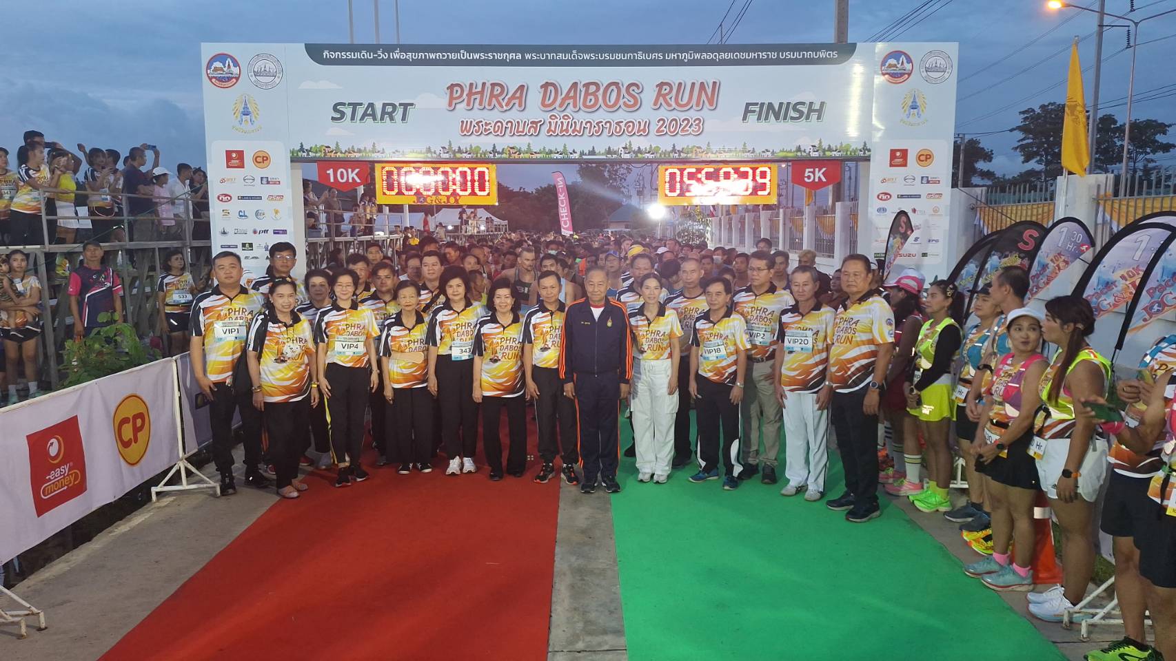 จากนั้น พลเอกสุรยุทธ์ จุลานนท์ ประธานองคมนตรี เดินทางมาเป็นประธาน มอบถ้วยพระราชทานฯ ประเภทเดินวิ่งระยะทาง 10 กิโลเมตร ชาย-หญิง และมอบโล่ ผู้สนับสนุนกิจกรรม เดิน-วิ่ง เพื่อสุขภาพเฉลิมพระเกียรติ “พระดาบส มินิมาราธอน 2023” (PHRADABOS RUN) สองแสนบาท จำนวน 2 ราย สามแสนบาท จำนวน 9 ราย พร้อมเข็มพระราชทาน และมอบของที่ระลึกให้แก่นายศุภมิตร ชิณศรี ผู้ว่าราชการจังหวัดสมุทรปราการ และนางสาวนันทิดา แก้วบัวสาย นายกองค์การบริหารส่วนจังหวัดสมุทรปราการ โดยมี พลอากาศเอกชลิต พุกผาสุข องคมนตรี มอบเงินรางวัล Over All ผู้ชนะการแข่งขัน ประเภทเดินวิ่งระยะทาง 10 กิโลเมตร จำนวน 30 รางวัล ได้แก่ ประเภทชายอันดับ 1-5 และประเภทหญิงอันดับ 1-5 โดยนายศุภมิตร ชิณศรี ผู้ว่าราชการจังหวัดสมุทรปราการ มอบถ้วยรางวัล ผู้ชนะการแข่งขัน(มินิมาราธอน 10 กิโลเมตร 9 กลุ่มอายุ) ประเภทชาย 5 รางวัล ได้แก่ รุ่นอายุไม่เกิน 29 ปี รุ่นอายุไม่เกิน 30-39 ปี รุ่นอายุไม่เกิน 40-49 ปี รุ่นอายุไม่เกิน 50-59 ปี อายุ 60 ปี ขึ้นไป และประเภทหญิง 4 รางวัล ได้แก่ รุ่นอายุไม่เกิน 29 ปี รุ่นอายุไม่เกิน 30-39 ปี รุ่นอายุไม่เกิน 40-49 ปี และอายุ 50 ปี ขึ้นไป พร้อมทั้งมอบโล่ผู้สนับสนุน ห้าหมื่นบาท จำนวน 33 ราย มอบทุนการศึกษานักเรียน (Fun Run 5 กิโลเมตร) อันดับ 1-9