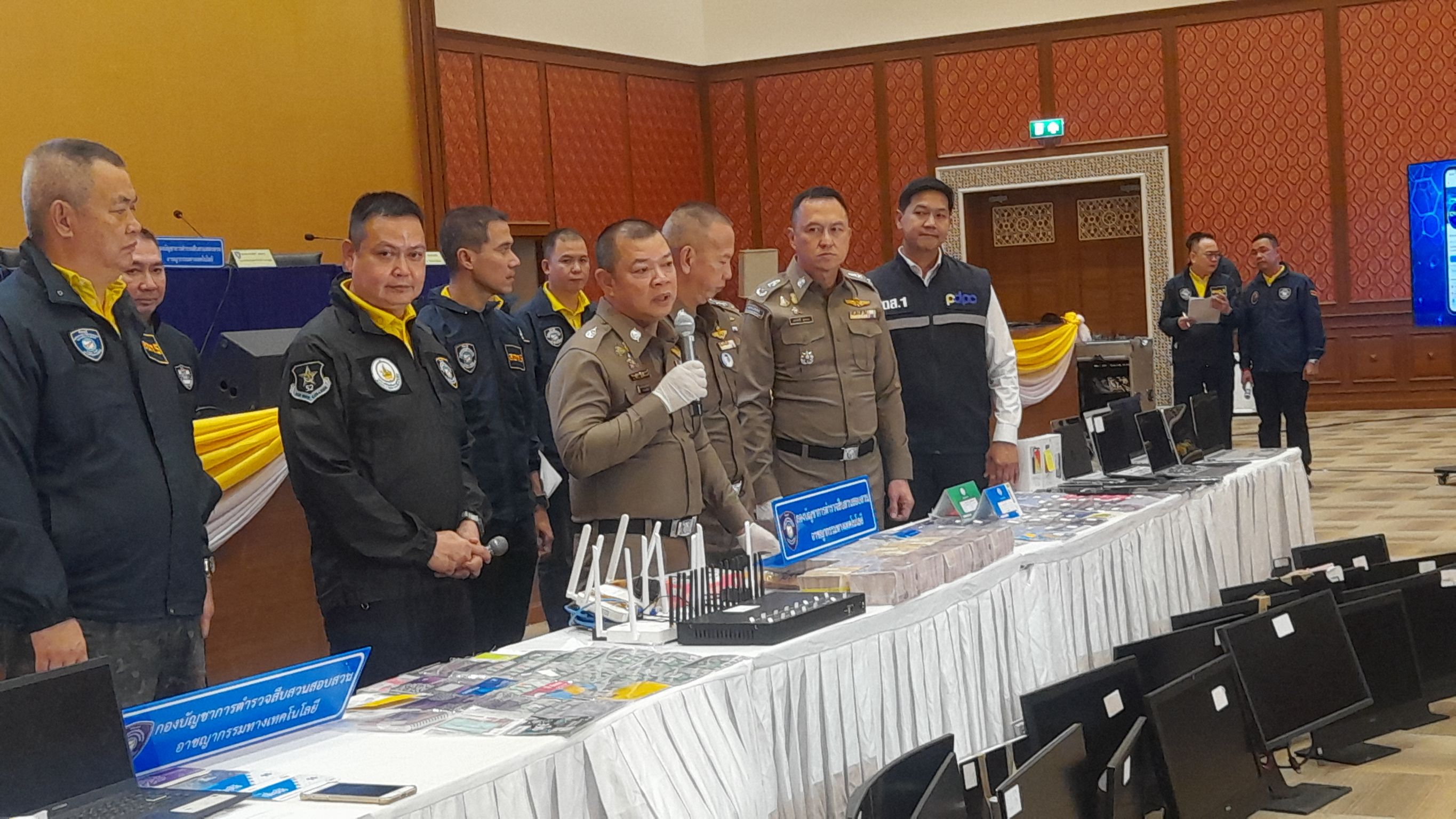 พล.ต.ท.ธนา ชูวงศ์ ผู้ช่วย ผบ.ตร.รรท.รอง ผบ.ตร. พร้อมด้วย พล.ต.ท.สำราญ นวลมา ผู้ช่วย ผบ.ตร. และพล.ต.ท.วรวัฒน์ วัฒน์นครบัญชา ผบช.สอท. แถลงผลจับกุมโบรกเกอร์ของบริษัทประกันภัยชื่อดัง ลักลอบนำข้อมูลส่วนบุคคลนับล้านรายชื่อขายให้มิจฉาชีพ พร้อมจับกุมโปรแกรมเมอร์สร้างแอปพลิเคชั่นสแกนใบหน้าปลอมให้แก๊งคอลเซ็นเตอร์ใช้ถอนเงิน