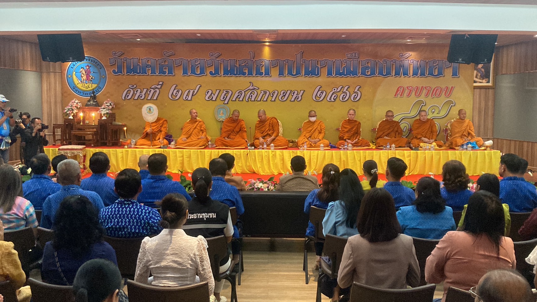 ทั้งนี้ ได้จัดให้มีพิธีสงฆ์เจริญพระพุทธมนต์ จากพระเถรานุเถระจำนวน 9 รูป โดยมี คณะผู้บริหารเมืองพัทยา คณะที่ปรึกษานายกเมืองพัทยา คณะทำงานนายกเมืองพัทยา คณะสมาชิกสภาเมืองพัทยา คณะข้าราชการเมืองพัทยา และพนักงานเมืองพัทยาเข้าร่วมพิธีอย่างพร้อมเพรียง ก่อนนายกเมืองพัทยา วางพวงมาลัยเพื่อรำลึกถึงนายปริญญา ชวลิตธำรง ผู้มอบที่ดินจำนวน 10 ไร่ ในการสร้างศาลาว่าการเมืองพัทยา