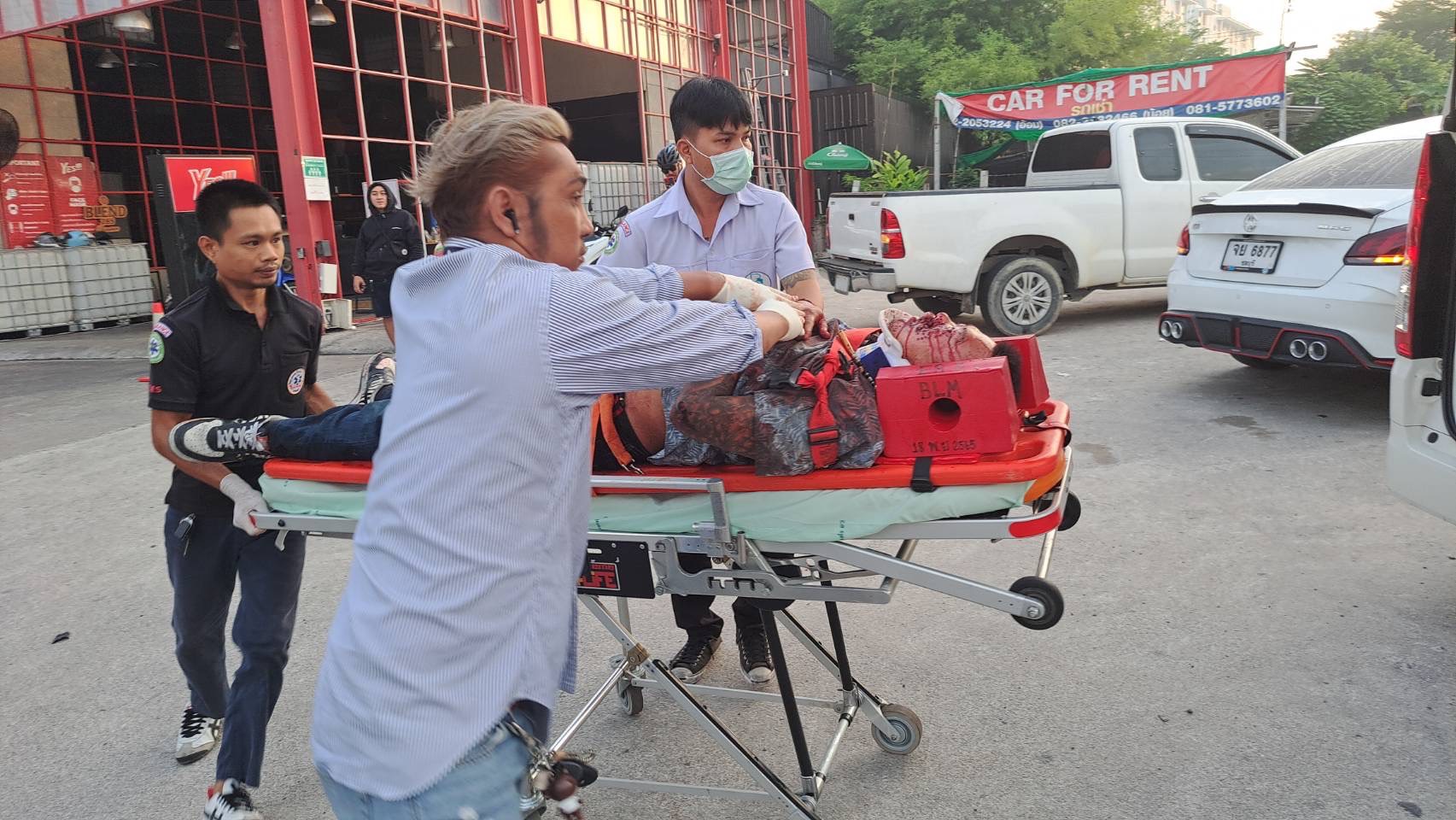 ที่เกิดเหตุพบรถ จยย.ยี่ห้อฮอนด้า พีซีเอ็ก สีแดง หมายเลขทะเบียน 2 กล 6587 ชลบุรี ล้มอยู่กลางถนน ข้างกันยังพบร่าง นายณัฐภัทร บุญชาลี อายุ 28 ปี ผู้ช่วยผู้สื่อข่าวเมืองพัทยา มีบาดแผลที่โหนกแก้มซ้าย มีเลือดไหลอาบใบหน้า เจัาหน้าที่กู้ภัยฯปฐมพยาบาลเบื้องต้น ก่อนเคลื่อนย้ายส่งโรงพยาบาลอย่างเร่งด่วน ภายหลังทีมแพทย์เอ็กซ์เรย์ พบลูกกระสุนลูกปลายฝังอยู่ในเบ้าตา และในหัวสมอง กว่า 40 นัด