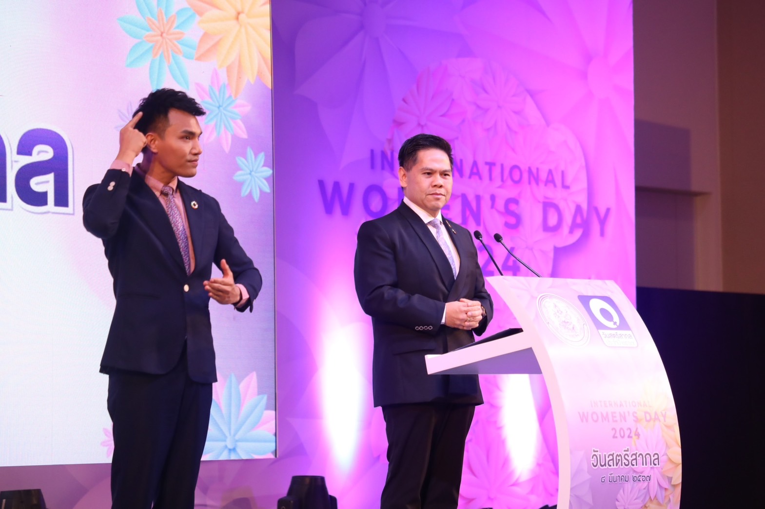 นายวราวุธ กล่าวว่า สืบเนื่องจากองค์การสหประชาชาติ ได้รับรองให้วันที่ 8 มีนาคมของทุกปี เป็นวันสตรีสากล เป็นวาระที่สตรีและผู้ที่ทำงานด้านสตรีทั่วโลกร่วมฉลองและระลึกถึงการต่อสู้เพื่อความเสมอภาค ยุติธรรม สันติภาพ และการพัฒนา ประเทศไทยได้เริ่มจัดงานวันสตรีสากลอย่างเป็นทางการ เมื่อปี 2532 ปัจจุบัน นับเป็นปีที่ 36 ซึ่งกระทรวง พม. ได้รับความร่วมมือจากเครือข่ายทุกภาคอย่างต่อเนื่อง ทั้งนี้ ภารกิจของรัฐบาลด้านการพัฒนาสตรีและส่งเสริมความเสมอภาคระหว่างเพศ ภายใต้ความรับผิดชอบของกระทรวง พม. โดยกรมกิจการสตรีและสถาบันครอบครัว (สค.) ตามกรอบยุทธศาสตร์ชาติ ประกอบกับนโยบาย พม. หนึ่งเดียว ที่มุ่งมั่นเสริมพลัง สร้างโอกาส และพัฒนาคนทุกช่วงวัย และพันธกรณีระหว่างประเทศที่ไทยเป็นภาคี อาทิ อนุสัญญา CEDAW ปฏิญญาปักกิ่ง และ SDG เป้าหมายที่ 5 โดยได้จัดทำแผนปฏิบัติการด้านการพัฒนาสตรี (พ.ศ. 2566 - 2570) ขึ้น เพื่อเป็น Roadmap ของกระทรวง พม. รวมถึงหน่วยงานที่เกี่ยวข้อง ด้วยวิสัยทัศน์ “สังคมไทยเป็นสังคมที่ตระหนักและเข้าใจถึงความเสมอภาคระหว่างเพศ สตรีและเด็กหญิง จะได้รับการปฏิบัติอย่างเป็นธรรม สามารถดำรงชีวิตอย่างปลอดภัยจากความรุนแรงทุกรูปแบบ มีโอกาสเข้าถึงการพัฒนาตนเองได้เต็มศักยภาพ และมีบทบาทการนำในพื้นที่สาธารณะอย่างเท่าเทียม”