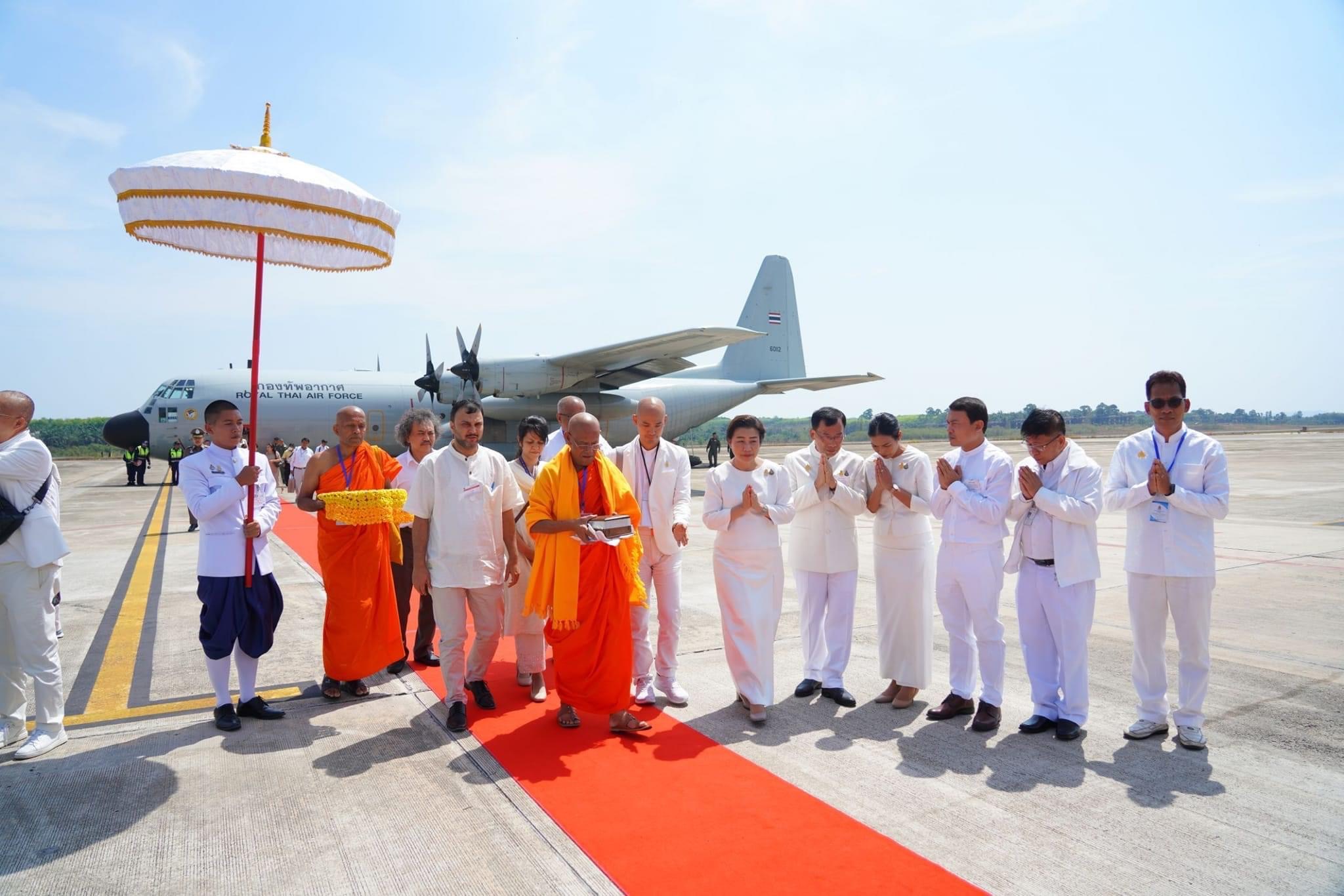 วันที่ ๑๔ มีนาคม ๒๕๖๗ เวลา ๐๘.๓๐ น. นายเสริมศักดิ์ พงษ์พานิช รัฐมนตรีว่าการกระทรวงวัฒนธรรม เป็นประธานในพิธีอัญเชิญพระบรมสารีริกธาตุ และพระอรหันตธาตุของพระสารีบุตรและพระโมคคัลลานะ จากท่าอากาศยานทหาร กองบิน ๒๑ อุบลราชธานี ถึงท่าอากาศยานนานาชาติกระบี่ โดยมีนายพลภูมิ วิภัติภูมิประเทศ ผู้ช่วยรัฐมนตรีประจำกระทรวงวัฒนธรรม นางลาลีวรรณ กาญจนจารี ผู้ช่วยรัฐมนตรีประจำกระทรวงวัฒนธรรม นางยุพา ทวีวัฒนะกิจบวร ปลัดกระทรวงวัฒนธรรม นางปอโลมี ตริปาฐี อุปทูตสาธารณรัฐอินเดียประจำประเทศไทย นายสมชาย หาญภักดีปฏิมา ผู้ว่าราชการจังหวัดกระบี่ นายชัยพล สุขเอี่ยม อธิบดีกรมการศาสนา ผู้บริหาร ข้าราชการ เจ้าหน้าที่ และพุทธศาสนิกชนเข้าร่วมพิธี ณ ท่าอากาศยานนานาชาติจังหวัดกระบี่