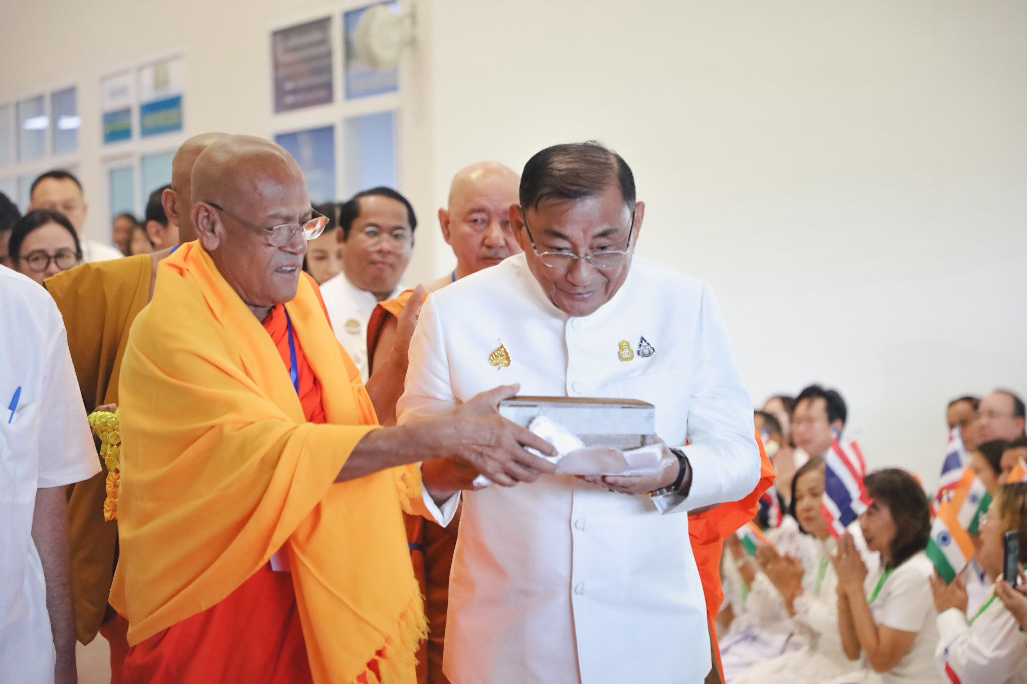 ทั้งนี้ ผู้แทนจากอินเดียได้อัญเชิญพระบรมสารีริกธาตุและพระอรหันตธาตุของพระสารีบุตรและพระโมคคัลลานะลงจากเครื่องบินไปประกอบพิธีสวดเจริญพระพุทธมนต์ และเจริญชัยมงคลคาถา ณ ห้องรับรอง ภายในสนามบิน โดยมีพระเทพวชิรากร เจ้าอาวาสวัดมหาธาตุวชิรมงคล ประธานฝ่ายสงฆ์ คณะสงฆ์ฝ่ายไทยและอินเดียเข้าร่วมประกอบพิธี ก่อนจะอัญเชิญพระบรมสารีริกธาตุไปประดิษฐานยังห้องมั่นคงภายใน ณ วัดมหาธาตุวชิรมงคล หรือวัดบางโทง ตำบลนาเหนือ อำเภออ่าวลึก จังหวัดกระบี่ และในวันที่ ๑๕ มีนาคม ๒๕๖๗ เวลา ๐๗.๐๐ น. ทางจังหวัดได้จัดขบวนอัญเชิญยิ่งใหญ่ บนทางหลวงแผ่นดินหมายเลข ๔๑๕ สายนาเหนือ - พนม ประกอบด้วย ขบวนช้างเทิดพระเกียรติ และนางรำมโนราห์กว่า ๖๐๐ คน ข้าราชการ และประชาชนกว่าพันคน ร่วมในขบวน และในเวลา ๑๒.๐๐ น. จะเปิดให้ประชาชนได้เข้ากราบสักการะ ตั้งแต่วันที่ ๑๕ - ๑๘ มีนาคมนี้