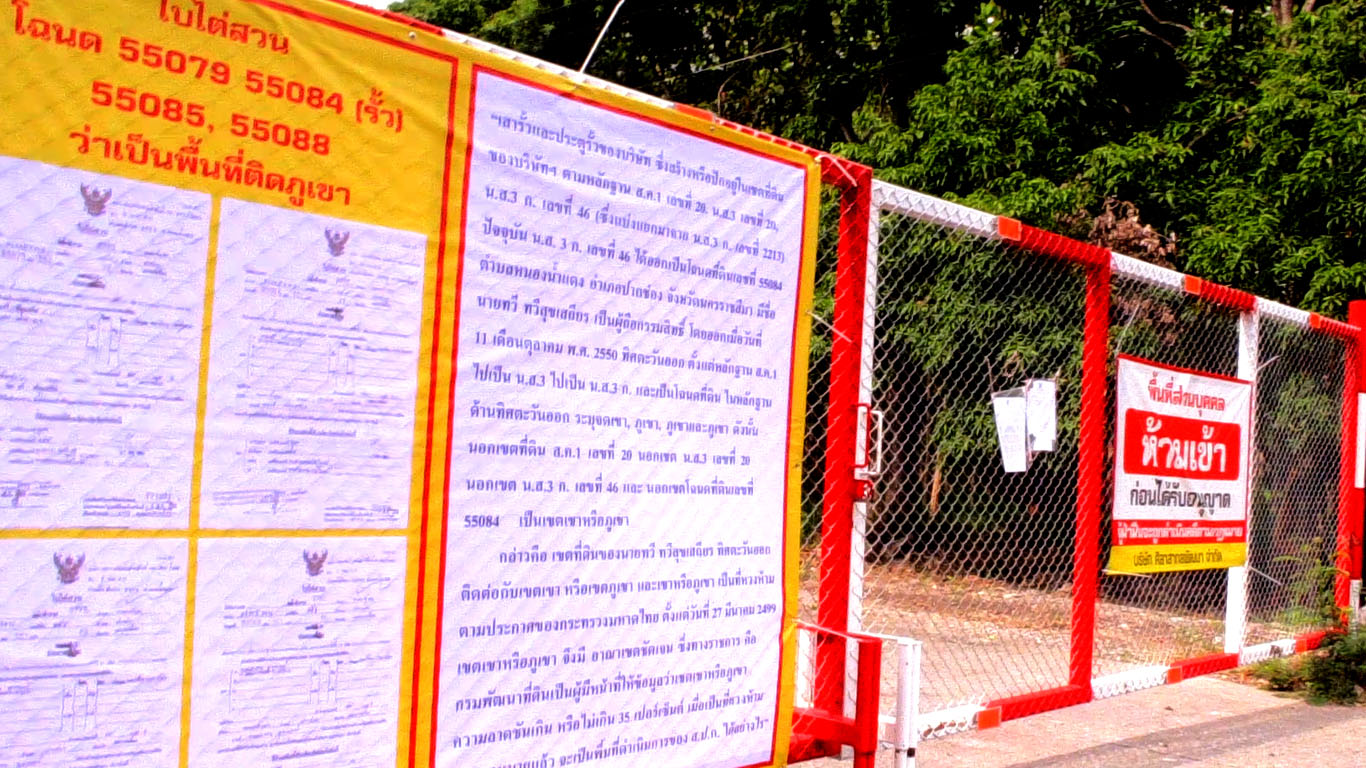 2 ผู้บริหารบริษัทโรงโม่หิน ที่ขึ้นชื่อของ อำเภอปากช่อง จ.นครราชสีมา เล่าให้ทีมข่าวฟังว่า บริษัทครอบครองกรรมสิทธิ์ที่ดินติดเขาอย่างถูกต้อง โดยเป็น สค.1 เมื่อปี พ.ศ. 2498 จนเปลี่ยนเป็น นส 3 นส 3 ก. และเป็นโฉนดเมื่อปี พ.ศ. 2550 จึงเป็นที่ดินของบริษัทอย่างถูกต้อง เมื่อมีการออกเป็นโฉนดซึ่งระบุพื้นที่ติดเขา หน่วยงานราชการกลับบอกว่า ถนนที่ทางบริษัทปิดไว้ตามสิทธิ์การครอบครอง และเกรงว่าอาจเกิดอันตรายหากเปิดให้มีการสัญจรไปมา เป็นทางสาธารณะตามกฎหมายของกระทรวงมหาดไทย ที่ออกมาตั้งแต่ปี 2599 ที่ให้พื้นที่ไหล่เขา กว้าง 40 เมตร เป็นทางสาธารณะ ซึ่งตามความเป็นจริง บริษัทถือครองที่ดินมาก่อนกฏหมายดังกล่าว และใช้งบประมาณของทางบริษัททำเป็นถนนราดยางมะตอยให้รถขนาดใหญ่เข้า-ออก ซึ่งทางบริษัทได้ยื่นต่อศาลขออำนาจคุ้มครอง และยื่นเอกสารการครอบครองต่อกรมที่ดิน ซึ่งอาจจะเกิดข้อผิดพลาดการออกโฉนดให้ทางบริษัทขาดพื้นที่ไปส่วนหนึ่ง ซึ่งร้องเรียนขอให้ออกโฉนดเพิ่ม