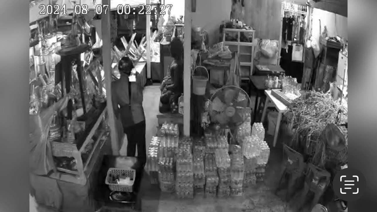 ภาพจากกล้องวงจรปิด จับภาพวันที่ 7 ส.ค. 67 เวลาประมาณ 00.21น. จับภาพคนร้ายเป็นชาย ใส่เสื้อเชิ้ตแขนยาว สวมกางเกงขายาวสีดำ และใส่หมวกกันน็อกครึ่งใบ สวมแว่นตา เดินเข้ามาจากทางด้านหลังของเต๊นท์จุดถวายสังฆทาน ใช้เวลาประมาณ 1 นาที หลังจากนั้นเดินไปลากรถเข็นออกและเดินเข้าไปที่บริเวณหิ้งวางเศียรพ่อแก่ หลังจากนั้นคนร้ายได้เอื้อมมือหยิบเศียรลงมาจากหิ้ง แล้วรีบเดินหนีออกไปทางด้านหลังวัด