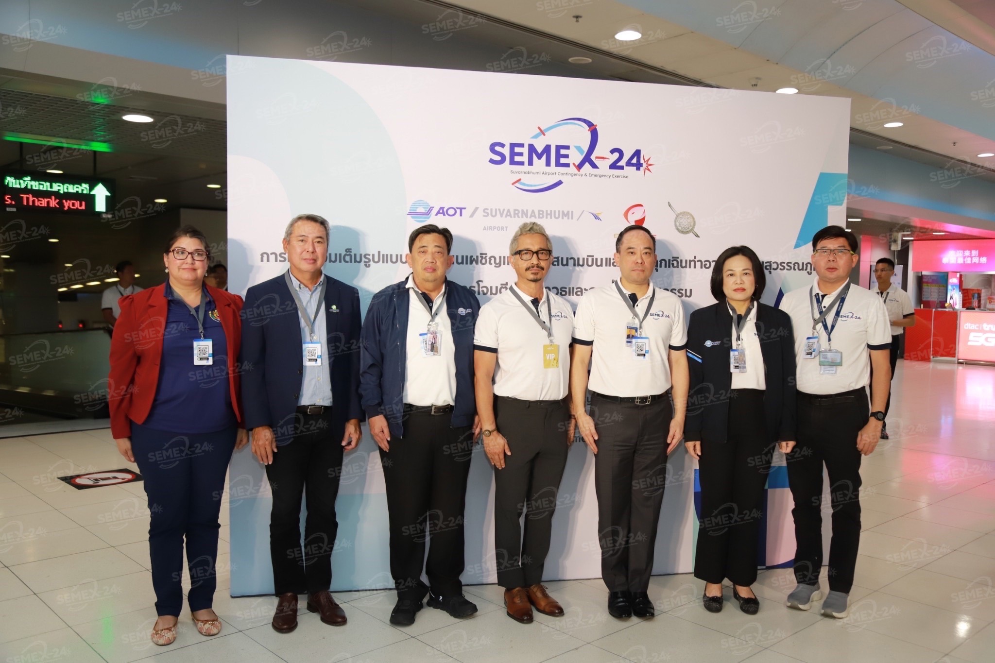 ท่าอากาศยานไทย จำกัด (มหาชน) (ทอท.) เป็นประธานในพิธีเปิดการจัดฝึกซ้อมเต็มรูปแบบ (Full Scale Exercise) ตามแผนเผชิญเหตุของสนามบินและแผนฉุกเฉิน ทสภ. ประจำปี 2567 (SEMEX - 24) โดยในปีนี้ท่าอากาศยานสุวรรณภูมิ (ทสภ.) ได้จำลองสถานการณ์เสมือนจริง กรณีการโจมตีด้วยอาวุธและการก่อวินาศกรรม หัวข้อการกราดยิง ซึ่งเป็นการบูรณาการการฝึกซ้อมร่วมกันของหน่วยงาน อาทิ หน่วยปฏิบัติการพิเศษหนุมาน กองบัญชาการตำรวจสอบสวนกลาง สถานีตำรวจภูธรท่าอากาศยานสุวรรณภูมิ บริษัท เอเชีย เอรา วัน จำกัด บริษัท วิทยุการบินแห่งประเทศไทย จำกัด หน่วยงานสาธารณสุขจังหวัดสมุทรปราการ พร้อมด้วยส่วนงานของ ทสภ. ตามแผนเผชิญเหตุของสนามบิน โดยทำการฝึกซ้อมฯ บริเวณชั้น B อาคารผู้โดยสาร พื้นที่เชื่อมต่อและพื้นที่จำหน่ายตั๋วของสถานีรถไฟฟ้าสุวรรณภูมิ