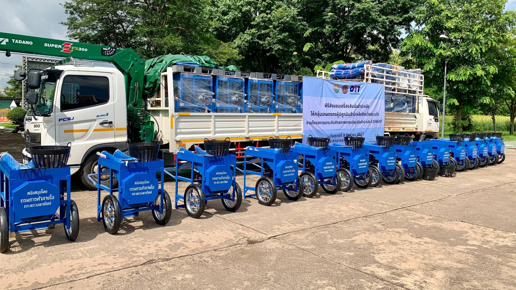 วันที่ 9 สิงหาคม 2567 จังหวัดสระแก้ว จัดพิธีส่งมอบเครื่องสับมันสำปะหลัง ให้กลุ่มเกษตรกรผู้ปลูกมันสำปะหลังจังหวัดสระแก้ว จำนวน 13 กลุ่ม รวมทั้งสิ้น 75 เครื่อง ตามโครงการยกระดับศักยภาพการแปรรูปมันสำปะหลัง ปี 2566/67 ณ ศาลากลางจังหวัดสระแก้ว โดยมีนายปริญญา โพธิสัตย์ ผู้ว่าราชการจังหวัดสระแก้ว เป็นประธานในการส่งมอบ พร้อมด้วย นางสาวเอื้องจิตร ช่วยนกพาณิชย์จังหวัดสระแก้ว และหัวหน้าส่วนราชการ ผู้แทนสมาคมชาวไร่มันสำปะหลังแห่งประเทศไทย และกลุ่มเกษตรผู้ปลูกมันสำปะหลังจังหวัดสระแก้ว