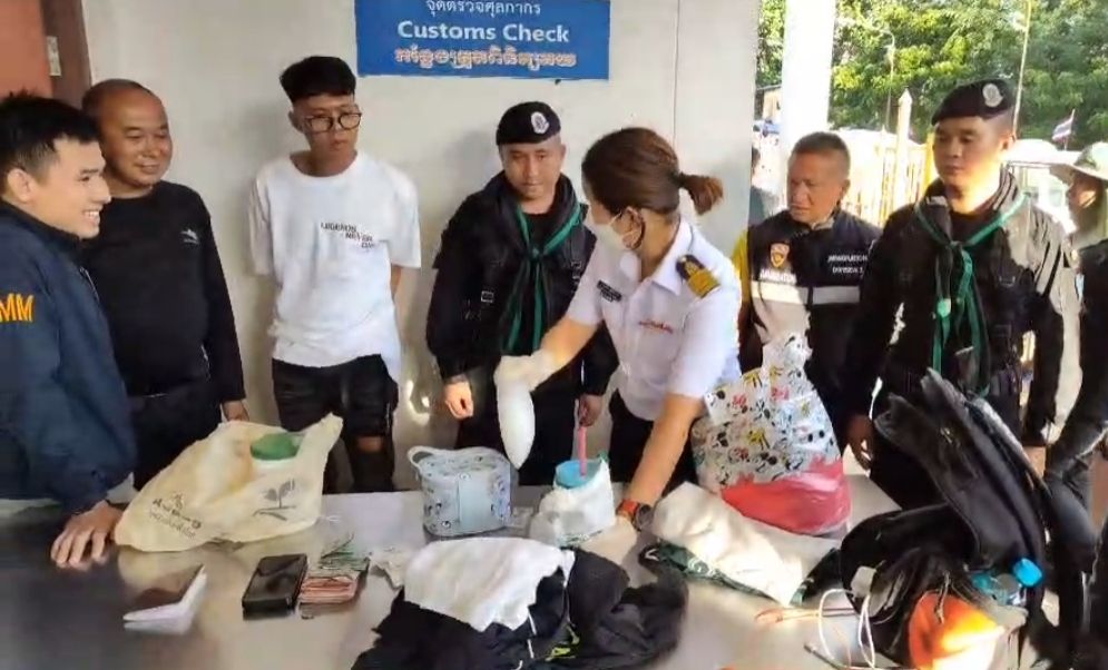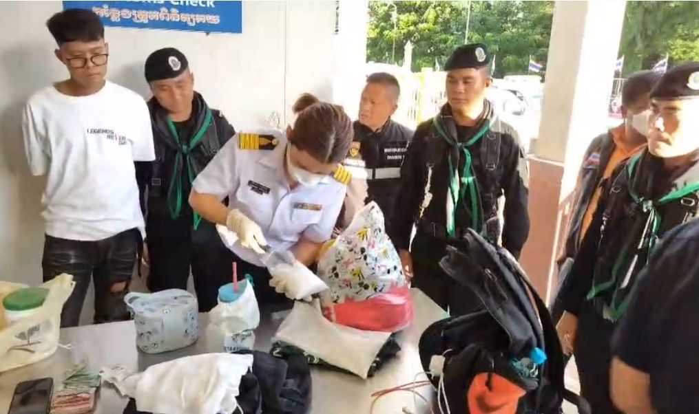 ต่อมา จนท.ชุดปฏิบัติการร่วมฯบริเวณจุดตรวจสัมภาระขาออกจากประเทศไทย ได้ตรวจพบชายไทยต้องสงสัยสวมเสื้อยืดคอกลมสีขาว นุ่งกางเกงขายาวสีดำ สวมแว่นสายตา ในมือถือถุงผ้าสีขาวลักษณะลุกลี้ลุกลน เดินเท้ามาตามช่องทางเดินเท้ามุ่งหน้าจะออกไปฝั่งกัมพูชา จนท.จึงได้แสดงตัวขอตรวจค้นแต่ชายคนดังกล่าวพยายามขัดขืนไม่ยอมให้ตรวจค้น จนท.จึงได้ร่วมกันล็อกตัวไว้พร้อมทั้งนำถุงผ้าในมือมาตรวจสอบ พบภายในถุงผ้าพบมีถุงพลาสติกซิปล๊อคใส 2 ถุง ภายในบรรจุผงเกร็ดสีขาว เมื่อ จนท.นำมาตรวจด้วยอุปกรณ์ตรวจสารเสพติดพบว่าผงเกร็ดสีขาวในซิปล๊อคใสทั้ง2ถุงเป็นยาเคตามีน ซึ่งเป็นยาเสพติดประเภท2 โดยถุงแรกมีน้ำหนัก 520กรัม และถุงที่2น้ำหนัก 481กรัม รวมยาเคตามีนทั้งหมดมีน้ำหนักรวม 1001กรัม จึงควบคุมตัวนายอภิชาติ คงสมบูรณ์ อายุ 31 ปี ชาว กทม.พร้อมของกลางฯ มาทำการสอบสวนที่ จุดตรวจสัมภาระขาออกราชอาณาจักร ด่านพรมแดนบ้านคลองลึก อ.อรัญประเทศ จ.สระแก้ว