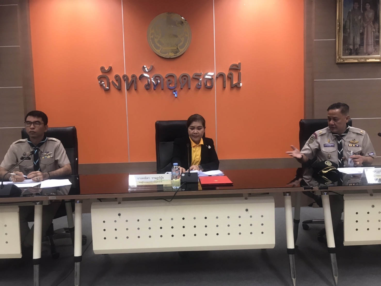 หัวหน้าสำนักงานลูกเสือจังหวัด เจ้าหน้าที่ลูกเสือจังหวัด ตัวแทนสมาคมลูกเสือและค่ายลูกเสือภายในจังหวัด เข้าร่วมประชุมเพื่อรับทราบแนวทางการปฏิบัติงานด้านกิจการลูกเสือของจังหวัดอุดรธานี ตลอดจน