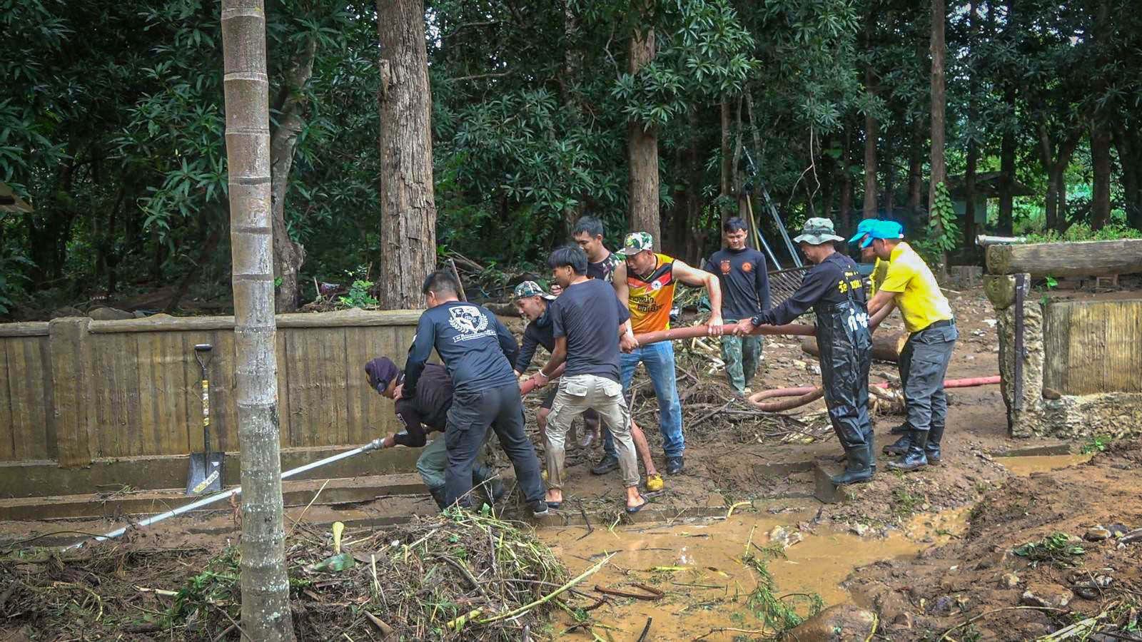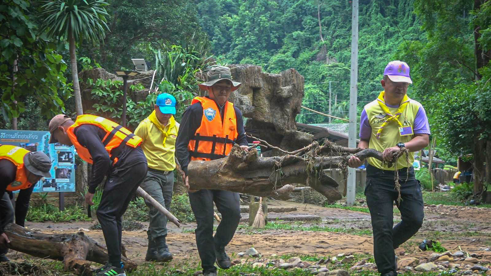 กองร้อย ตชด.336 ปางหมู จัดกำลังพล จิตอาสาทำการพัฒนาทำความสะอาดแหล่งท่องเที่ยวถ้ำปลา หลังจากถูกน้ำป่าไหลหลาก ดินโคลนถล่ม จนเสียหาย