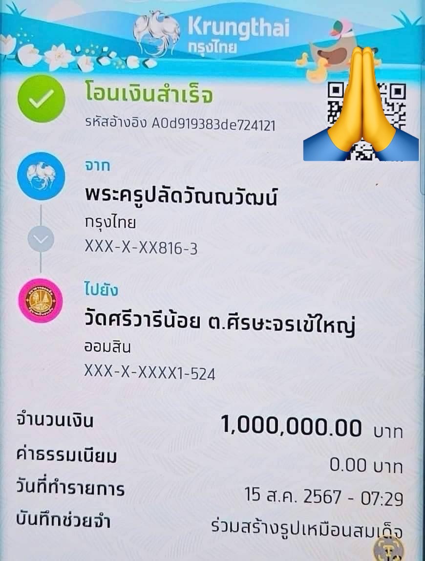 ถวาย 1 ล้านบาท ร่วมสร้างสมเด็จพุทธจารย์โต พรหมรังสี องค์ใหญ่ขขนาดหน้าตัก 9 เมตรสูง 15 เมตร ณ.วัดศรีวารีน้อย