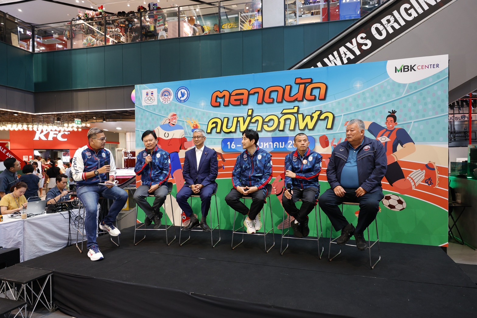 นอกจากนี้สร้างความประทับใจให้กับลูกค้าศูนย์การค้าเอ็ม บี เค เซ็นเตอร์ ตลอดจน คอกีฬา แฟนคลับและกองเชียร์ที่มาคอยต้อนรับชื่นชมเหล่าฮีโร่โอลิมปิกอย่างอบอุ่น นำโดย น้องเทนนิส พานิคภัค วงศ์พัฒนกิจ นักเทควันโดหญิง เจ้าของเหรียญทองโอลิมปิก 2 สมัย บี จันทร์แจ่ม สุวรรณเพ็ง นักมวยหญิงเหรียญทองแดงโอลิมปิก รุ่น 66 กิโลกรัม และน้องเอสที วารีรยา สุขเกษม นักกีฬาสเก็ตบอร์ดสาวดาวรุ่งวัย 12 ปีที่สร้างประวัติศาสตร์อายุน้อยที่สุดของทัพนักกีฬาไทยที่ไปโอลิมปิกเกมส์ 2024 โค้ชเช ชัชชัย เช หัวหน้าผู้ฝึกสอนนักกีฬาเทควันโดทีมชาติไทย พันตำรวจโทวิจารณ์ พลฤทธิ์ หัวหน้าผู้ฝึกสอนมวยสากลหญิงทีมชาติไทย นายธนา ไชยประสิทธิ์ หัวหน้าคณะนักกีฬาไทย และ ผศ.พิมล ศรีวิกรม์ นายกสมาคมกีฬาเทควันโดแห่งประเทศไทย ซึ่งนอกจากจะมาร่วมให้กำลังใจ พี่ ๆ น้อง ๆ นักข่าวกีฬาในงานตลาดนัดคนข่าวกีฬาแล้วยังร่วมเสวนา ในหัวข้อ “ทิศทางของโอลิมปิกไทย” ร่วมพูดคุย แลกเปลี่ยนประสบการณ์ โอลิมปิก ปารีส 2024 ถึง โอลิมปิก แอลเอ 2028
