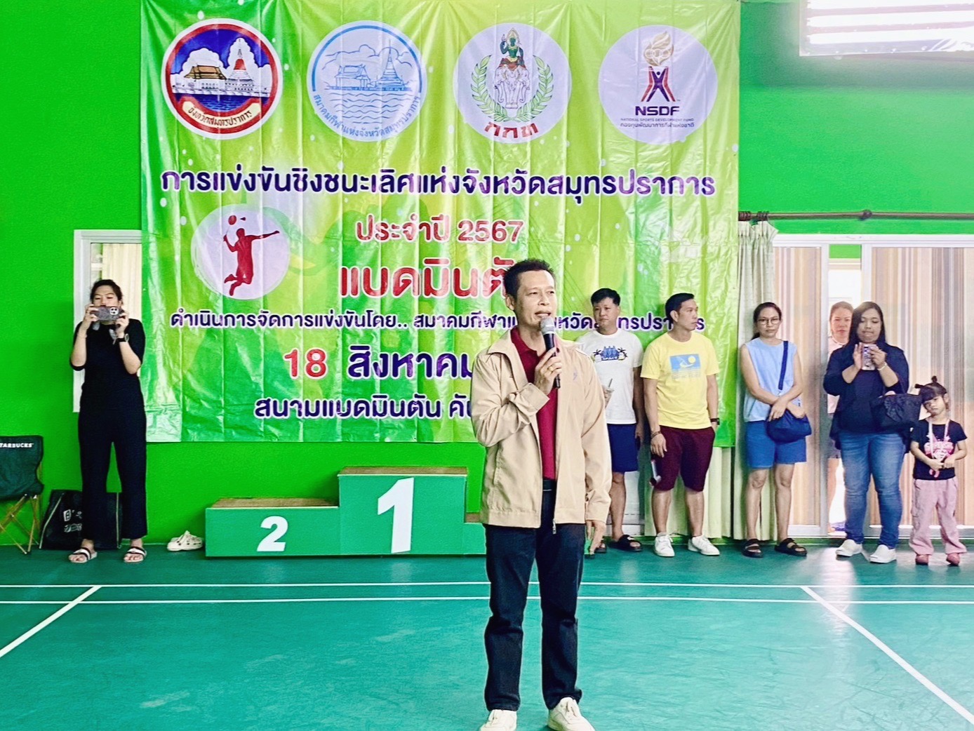 วันที่ 18 สิงหาคม 2567 เวลา 10.00 น. ว่าที่ ร.ต.ชัชวรรธณ์ นุชลำยอง ผู้อำนวยการ สนง.กกท.จังหวัดสมุทรปราการ ได้รับมอบหมายจากนายสุนทร ปานแสงทอง อดีตรัฐมนตรีช่วยว่าการกระทรวงเกษตรและสหกรณ์ ประธานที่ปรึกษาสมาคมกีฬาแห่งจังหวัดสมุทรปราการ และนายไพบูณร์ พิณเที่ยง นายกสมาคมกีฬาแห่งจังหวัดสมุทรปราการ ให้มาเป็นประธานในพิธีเปิดการแข่งขันกีฬาแบดมินตันชิงชนะเลิศแห่งจังหวัดสมุทรปราการ เพื่อคัดเลือกนักกีฬาเยาวชนเข้าร่วมการแข่งขันกีฬาเยาวชนแห่งชาติ ครั้งที่ 40 รอบคัดเลือก ภาค 1 จังหวัดชลบุรี ณ สนามแบดมินตันคันทรีไซด์บางปู อำเภอเมือง จังหวัดสมุทรปราการ