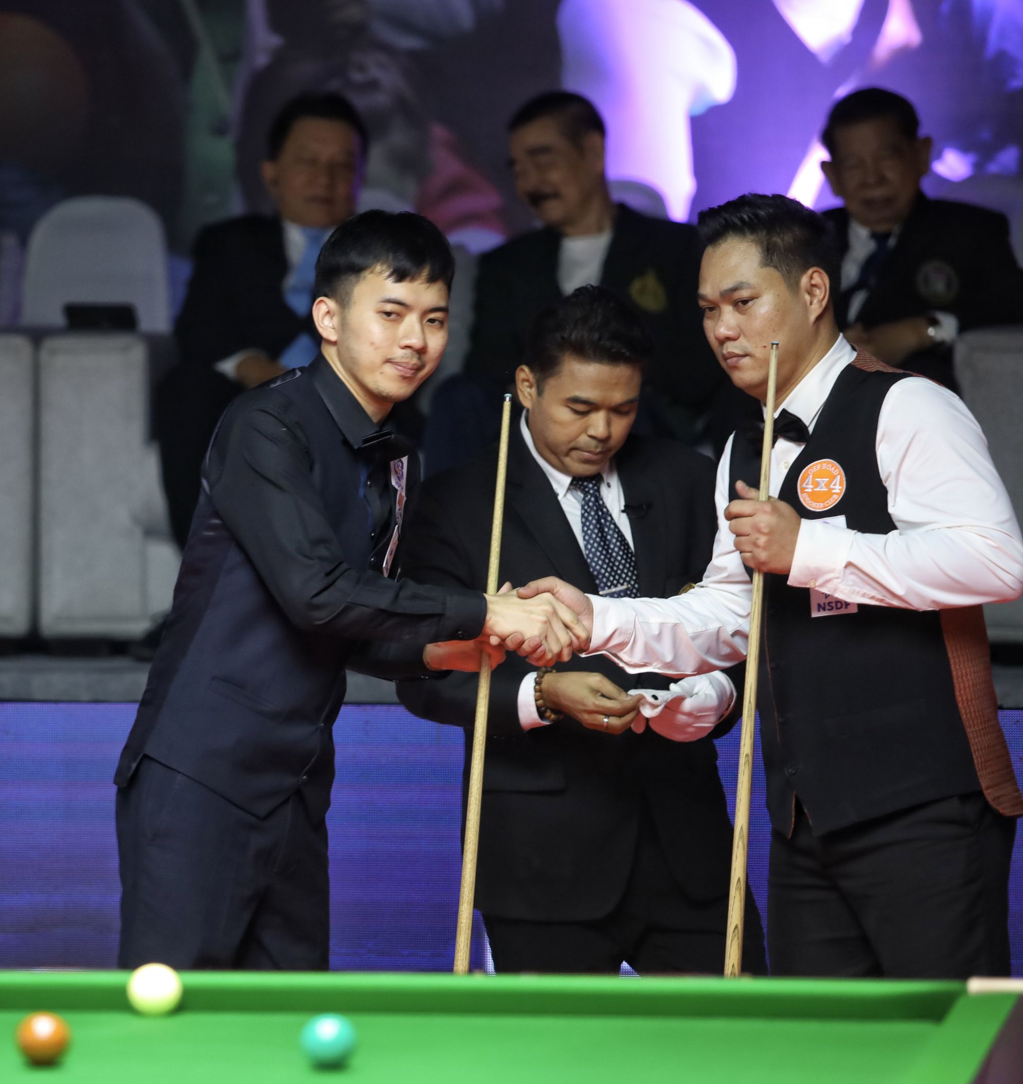 คู่นี้ “ท็อป จันท์” มีความสดกว่า เนื่องจากซ้อมในนามทีมชาติมาอย่างต่อเนื่อง ขณะที่ “กอล์ฟ บางพระ” ระยะหลังโชว์ฟอร์มได้อย่างร้อนแรงเช่นกัน ส่วนการแข่งขันรายการชิงแชมป์ประเทศไทยเพิ่งจะเข้ามาถึงรอบชิงชนะเลิศเป็นครั้งแรก โดย 2 เฟรมแรก “ท็อป จันท์” นำ 2-0 แต่อีก 2 เฟรมต่อมา “กอล์ฟ บางพระ” กลับมาเอาชนะได้บ้างเสมอกัน 2-2 และหลังจากนั้นผลัดกันเก็บชัยชนะได้ เฟรมต่อเฟรม จนเกมมายันเสมอกันที่ 7-7 เฟรม ต้องตัดสินในเฟรมสุดท้าย