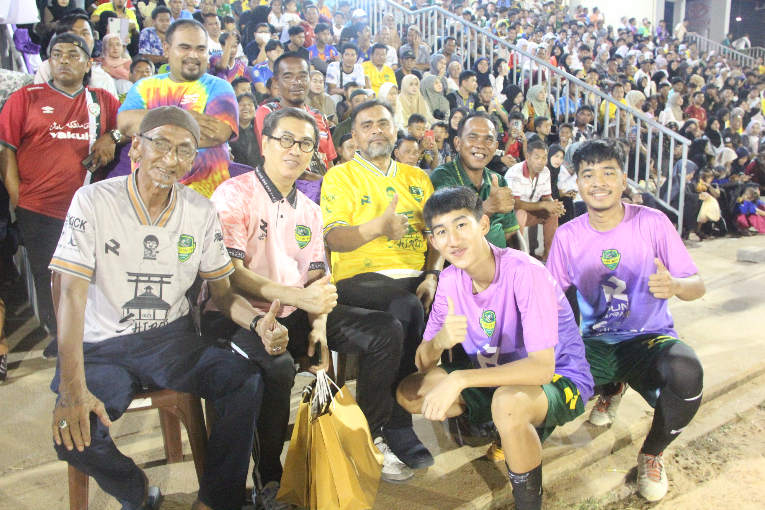 ที่สนามกีฬาเทศบาลเมืองนราธิวาส ประชาชนแฟนกีฬาหน้าคนรุ่นใหม่ คนรุ่นเก่า เด็กเล็ก เยาวชน ต่างเดินทางทยอยเข้าสนามกีฬา อย่างต่อเนื่อง เพียงไม่กี่นาที จนเต็มอัฒจรรย์ทั้ง 2 ด้าน และก่อนเกมส์การแข่งขันที่จะเริ่มขึ้น ไม่กีนาที ประชาชนได้เดินเข้าสนามจนไม่ที่นั่งและต้องนั่ง บนรอบสนามหญ้า ทำให้บรรยากาศเต็มรอบสนามนับหมื่นคน ทั้งนี้เป็นแมตซ์การแข่งขันเชื่อมสัมพันธ์ ระหว่างทีม สโมสรNARA UNITED (ไทย) สโมสรKelantan Darul Naim (มาเลเซีย) ซึ่งเกมส์การแข่งขันฟุตบอล ตั้งแต่เริ่ม จนจบการแข่งขัน มีเสียงเสียงเชียร์ จากกองเชียร์ และได้เสียงเชียร์ กระหึ่มสร้างสีสันทั้งสนาม จนจบเกมส์การแข่งขัน ประชาชนต่างเดินลงเข้าสนามเต็มสนาม เพื่อขอถ่ายรูปกับนักเตะ และขอลายเซ็นนักเตะ จนสนามแทบแตก สำหรับการแข่งขัน ระหว่างทีม สโมสรNARA UNITED (ไทย) สโมสรKelantan Darul Naim (มาเลเซีย) เสมอ 1-1)