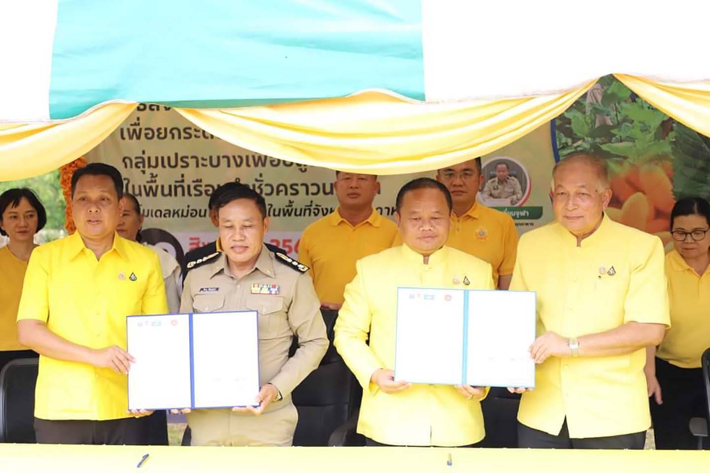 นายไกร เอี่ยมจุฬา รองผู้ว่าราชการจังหวัดมุกดาหาร รับมอบหมายจากผู้ว่าราชการจังหวัดมุกดาหาร ให้เป็นประธานในพิธีลงนามบันทึกข้อตกลงความร่วมมือ (MOU) เพื่อยกระดับรายได้ของครัวเรือนยากจน กลุ่มเปราะบางผู้ปลูกหม่อนเลี้ยงไหม สู่กระบวนการ Pro - Poor Value chain เส้นทางสายไหมในพื้นที่จังหวัดมุกดาหาร ระหว่าง เรือนจำจังหวัดมุกดาหาร กับวิทยาลัยชุมชนมุกดาหาร โดยมีหัวหน้าส่วนราชการ องค์กรภาคธุรกิจเอกชน ภาคประชาสังคมองค์กรชุมชน เข้าร่วมพิธี ณ เรือนจำชั่วคราวตำบลนาโสกอำเภอเมืองฯ จังหวัดมุกดาหาร
