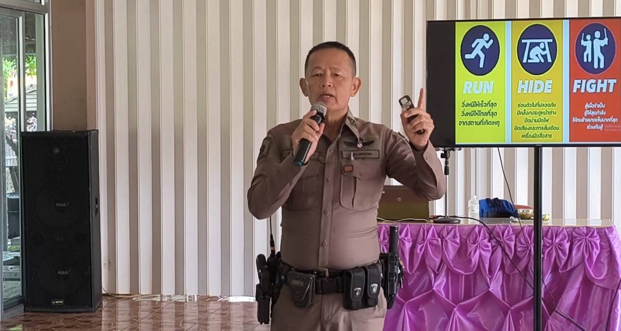 ที่อาคารโพธิ์เงิน - โพธิ์ทอง วิทยาลัยเทคโนโลยีพณิชยการนครนายก โดยพล.ต.ต.ดร.จักษ์ จิตตธรรม ผบก.ภ.จว.นครนายก พ.ต.อ. เผ่าภากร รามนุช รอง ผบก.ฯ ปรท.ผบก.ภ.จว.นครนายก มอบหมายให้ สภ.เมืองนครนายก โดยมี พ.ต.อ.สง่า ทางธรรม ผกก.สภ.เมืองนครนายก พ.ต.ต.วีระศักดิ์ บาลโสง สวป.สภ.เมืองนครนายก เจ้าหน้าที่ในสังกัดภ.จว.นครนายก ดำเนินการโครงการซ้อมแผนเผชิญเหตุ หนี ซ่อน สู้ (Run Hide Fight) โดยมอบหมายให้เจ้าหน้าที่ตำรวจสายตรวจรถยนต์ สายตรวจรถจักรยานยนต์ มาบรรยายพิเศษให้ความรู้แด่นักศึกษาพร้อมมีการซ้อมแผนเผชิญเหตุฯ เพื่อให้ความรู้กับสถานศึกษาในเขตพื้นที่จังหวัดนครนายก เช่น วิทยาลัยเทคโนโลยีพณิชยการนครนายก เป็นต้น