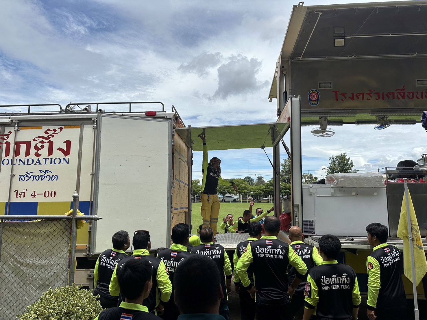 ในเบื้องต้นจากการลงพื้นที่พบผู้ประสบภัยหลายหมู่บ้าน กว่า 2 พันคน ทางมูลนิธิป๊อเต็กตึ้ง จึงเปิดโรงครัวเคลื่อนที่ เพื่อเร่งจัดทำอาหารปรุงสุกพร้อมน้ำดื่มแจกจ่าย อย่างทั่วถึง
