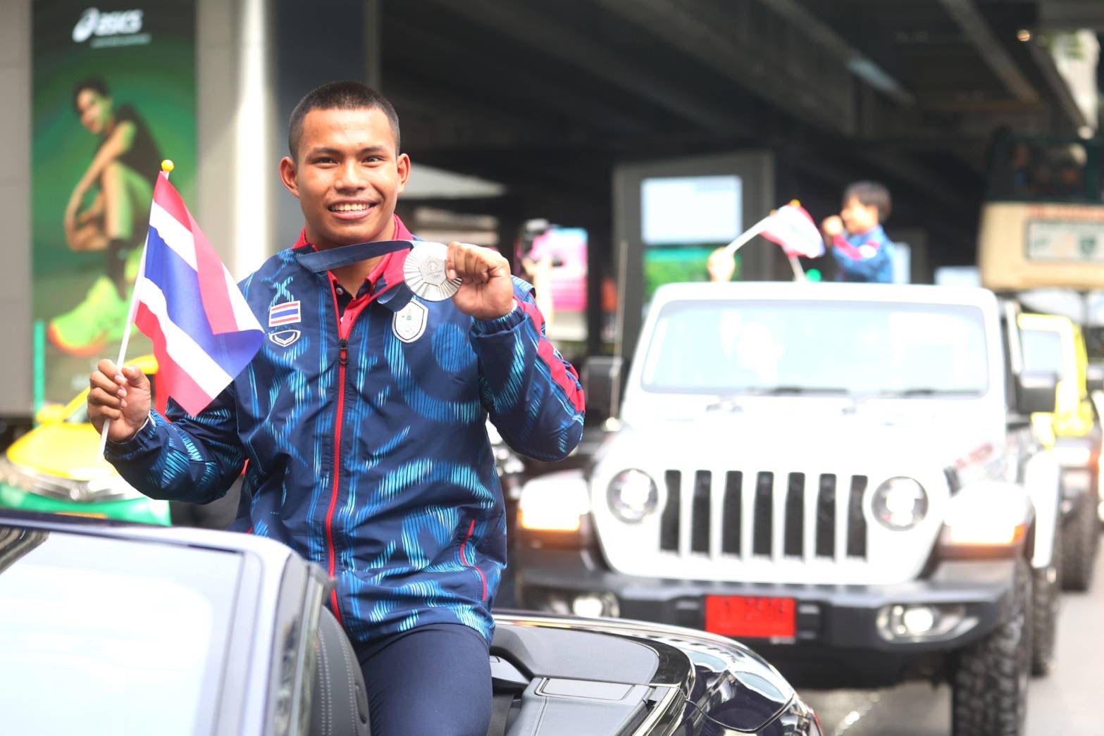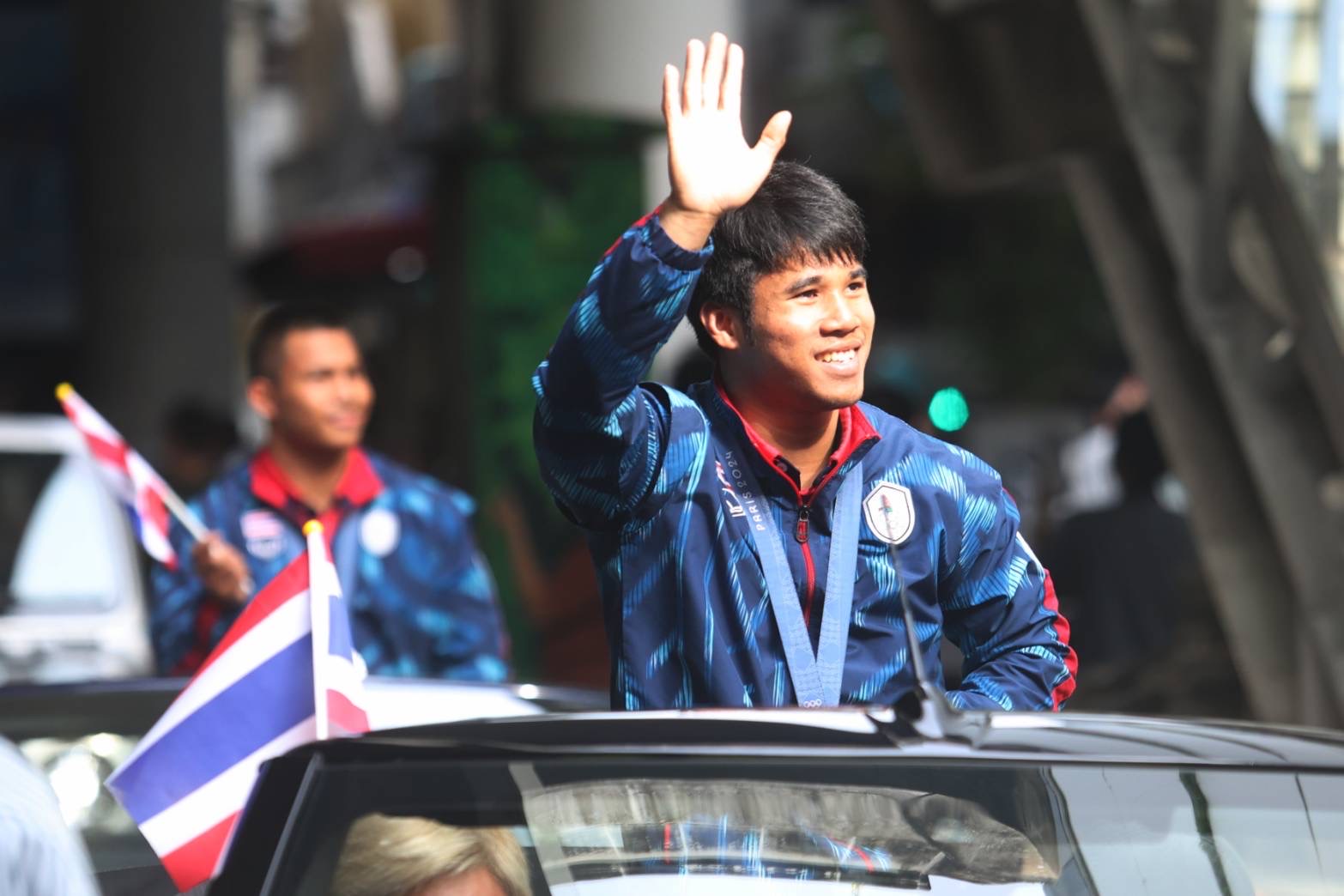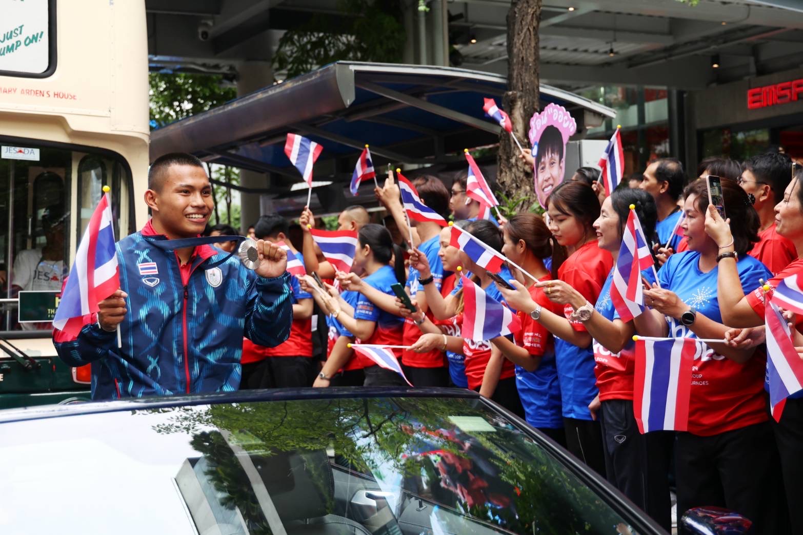 พร้อมกันนี้ มีผู้บริหารระดับสูงจากหน่วยงานภาครัฐและเอกชนร่วมยินดีคับคั่ง อาทิ ดร.ก้องศักด ยอดมณี ผู้ว่าการการกีฬาแห่งประเทศไทย, นางฐาปนีย์ เกียรติไพบูลย์ ผู้ว่าการการท่องเที่ยวแห่งประเทศไทย, ผศ.พิมล ศรีวิกรม์ นายกสมาคมกีฬาเทควันโดแห่งประเทศไทย, พลเอก ยศนันท์ หร่ายเจริญ ที่ปรึกษาสมาคมกีฬายกน้ำหนักสมัครเล่นแห่งประเทศไทย, นางกมลา ทองกร ประธานโรงเรียนแบดมินต้นบ้านทองหยอด, นักกีฬา, ผู้แทนสมาคมกีฬา รวมถึงผู้บริหารจากภาคเอกชน และประชาชนร่วมแสดงความยินดีตลอดเส้นทาง