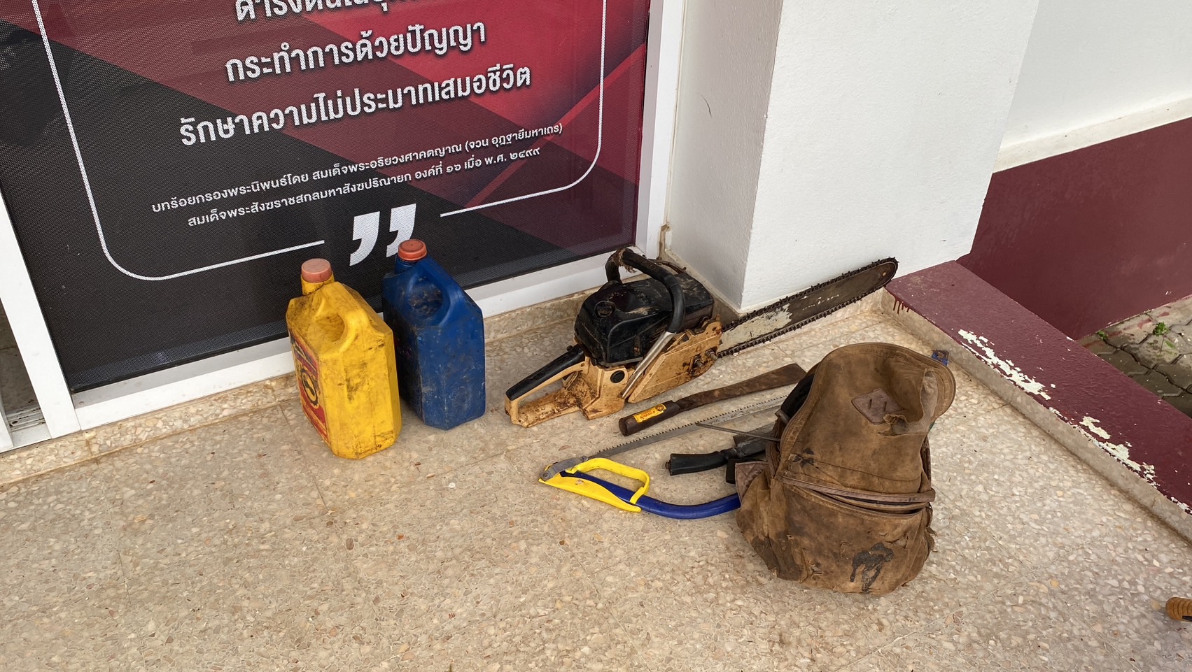 ที่เกิดเหตุพบชาย 4 คน มีของกลางเป็นเลื่อยเครื่องยนต์ และน้ำมัน เพื่อใช้สำหรับตัดไม้ พร้อมทั้งไม้หอมหนึ่งกอง รถยนต์กระบะที่ใช้ก่อเหตุ 1 คัน