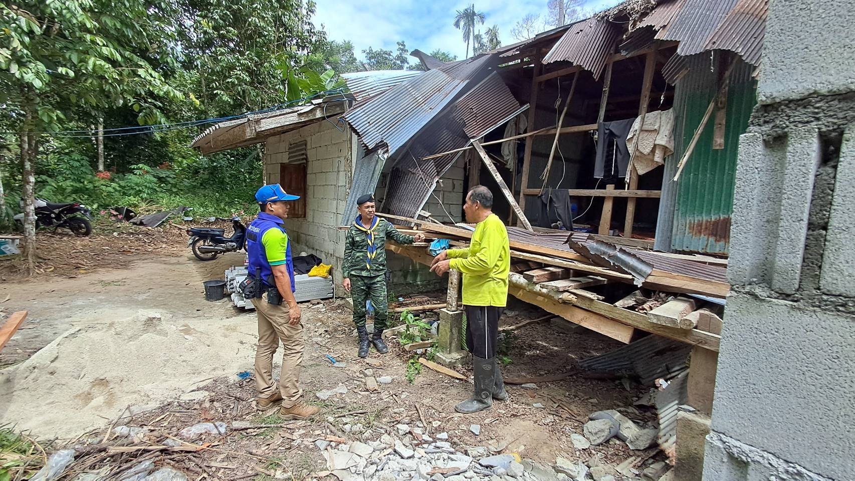 จ.ส.อ.อาทิตย์ ชิดสระน้อย รอง.หน.ชคต.ปะลุรู กล่าวว่า ผมเป็นเจ้าหน้าที่ทหารสังกัดกองพันทหารราบที่3 กรมทหารราบที่151 ได้มาประจำอยู่ที่ ชคต.ปะลุรู อ.สุไหงปาดี จ.นราธิวาส โดยมี พ.ท .ไตรศักดิ์ ปาลินทร์ทอง เป็นกองพันทหารราบที่ 3 ซึ่งผมได้นำกำลังพล 3 ฝ่าย พร้อมด้วยทหารอส. ผู้ช่วยในพื้นที่มาร่วมซ่อมแซมบ้านในพื้นที่ให้กับประชาชนที่ได้รับผลกระทบจากภัยพิบัติลม ฝนถล่ม ทำให้ต้นไม้ล้มทับบ้านเรือนชาวบ้านเกิดความเสียหาย ซึ่งผมและเจ้าหน้าที่ 3ฝ่าย พร้อมเข้าช่วยเหลือประชาชนที่ได้รับความเดือดร้อน