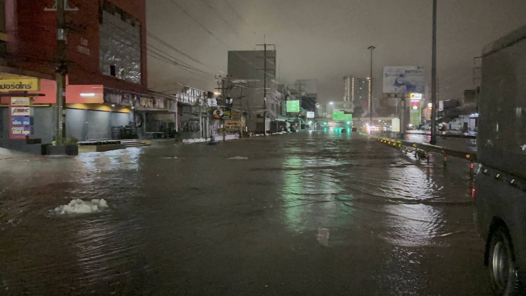 เมื่อวันที่ 3 กันยายน 2567 ผู้สื่อข่าวรายงาน สภาพอากาศในพื้นที่เมืองพัทยา อำเภอบางละมุง มีฝนฟ้าคะนองตกลงมาอย่างหนัก ต่อเนื่องเป็นเวลานานกว่า 3 ชั่วโมง ส่งผลให้ ปริมาณน้ำเพิ่มขึ้นอย่างรวดเร็ว ทำให้มวลน้ำระบายไม่ทัน จึงเอ่อขึ้นท่วมขัง หลายจุด โดยเฉพาะจุดที่มักจะมีน้ำเอ่อขึ้นท่วมขังเป็นประจำ ที่เกิดฝนตกต่อเนื่องนานกว่าครึ่งชั่วโมง เช่นบนถนนพัทยาสายสาม ถนนสุขุมวิท หน้าทางหลวงพัทยาใต้ ทั้งฝั่งขาเข้าสัตหีบและฝั่งขาเข้ากรุงเทพกรุงเทพมหานคร รวมถึงถนนเลียบทางรถไฟ ระหว่างซอยเขาตาโลถึงซอย วัดธรรมสามัคคี