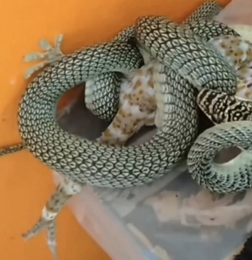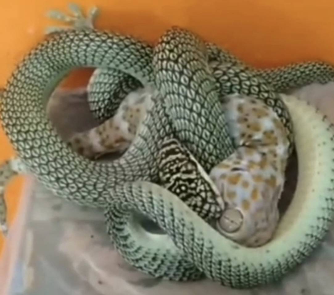 แม่ลูกได้พาไปชี้จุดที่งูเขียวพระอินทร์ได้เลี้อยลงมาจากหลังคาเข้ามาลัดตุ๊กแก 2 หางที่เกาะอยู่ข้างกำแพงบ้านใกล้หน้าต่าง สักพักก็ตกลงมากองอยู่บนกล่อง คุณยายนารี และ นางกุลฉัตร 2 แม่ลูกได้ช่วยกันใช้ไม้ด้ามยาวมาช่วยเขี่ยงูเขียวพระอินทร์และตุ๊กแก 2 หางให้แยกออกจากกันและต่างหลบวิ่งหนีเข้าไปในป่าข้างบ้านดังกล่าว