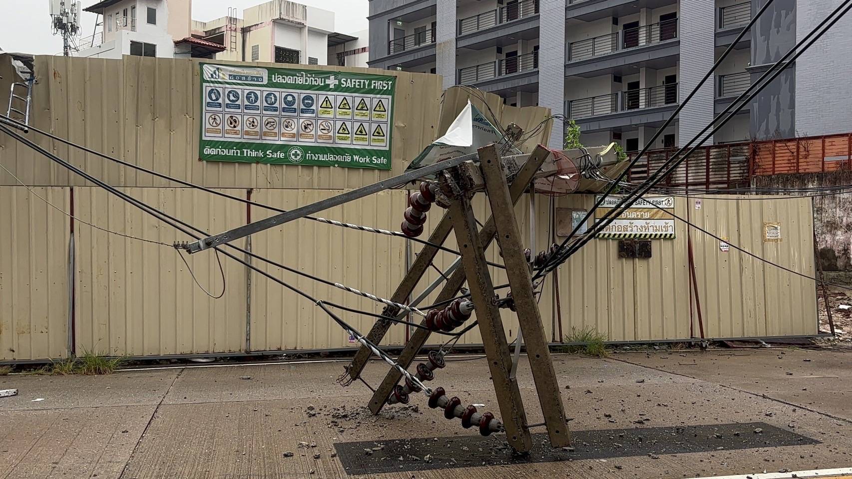 เมื่อเวลา 17.00 น.วันที่ 8 กันยายน 2567 ผู้ข่าวได้รายงานสภาพอากาศในพื้นที่เมืองพัทยา เกิดฝนตกลงมาอย่างหนัก มีลมกระโชกแรง ส่งผลให้นั่งร้านของไซด์งานก่อสร้างถล่มตกลงมาทับกับสายไฟฟ้า จนทำให้เสาไฟฟ้าแรงสูงจนหักโค่นขวางถนน เหตุเกิดภายในไซด์งานก่อสร้าง บนถนนพัทยากลาง ภายในซอยอรุโณทัย ต.หนองปรือ อ.บางละมุง จ.ชลบุรี
