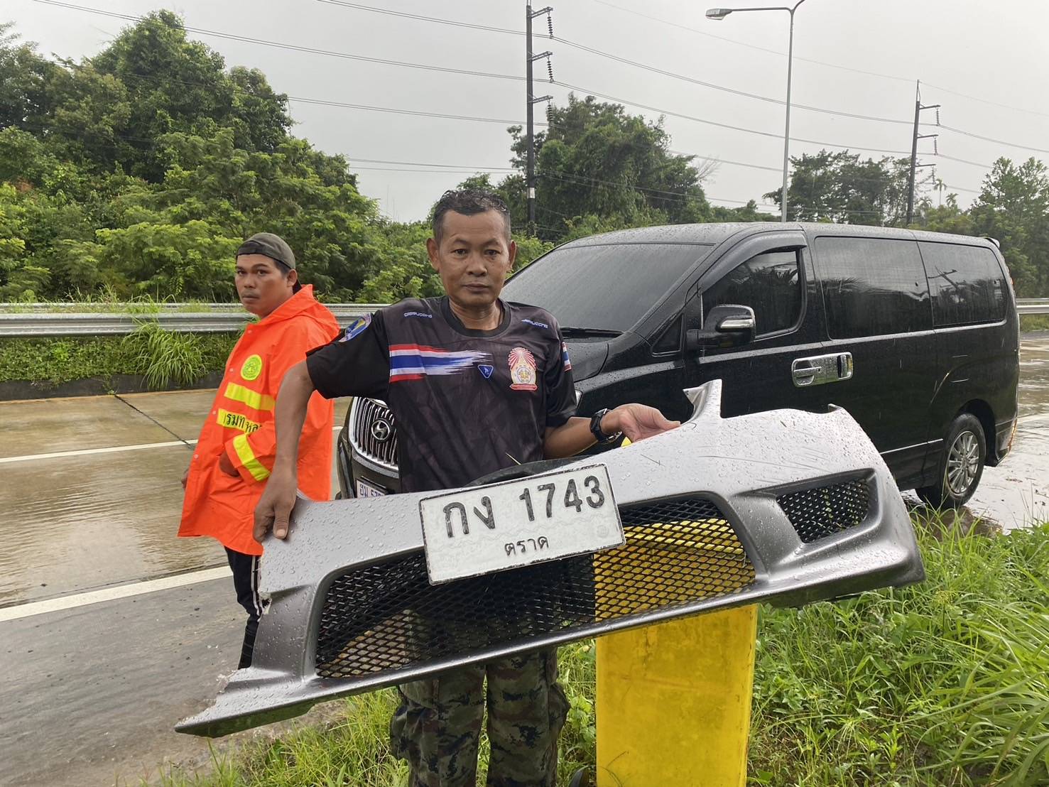 .มาถึงที่บริเวณที่เกิดเหตุพบรถยนต์เก๋งฮอนด้า สีบอร์นเงิน หมายเลขทะเบียน กง-1743 ตราด คนขับเป็นชาย ทราบชื่อต่อมาคือ นายสัภยา อายุ 23 ปี บ้านอยู่ อ.คลองใหญ่ จ.ตราด ยืนรอเจ้าหน้าที่ตํารวจและเจ้าหน้าที่ประกันในที่เกิดเหตุ สภาพเปียกทั้งตัว เจ้าหน้าที่ตำรวจจึงขอเป่าแอลกอฮอล์ในร่างกาย ไม่พบแอลกอฮอล์ในร่างกายแต่อย่างไร ทีมข่าวได้สอบถามนายสัภยาคนขับ เล่าว่าได้ขับรถมาจากจังหวัดตราดเพื่อกลับบ้าน อ.คลองใหญ่ ขับมาด้วยความเร็วประมาณ 70-80 เท่านั้น