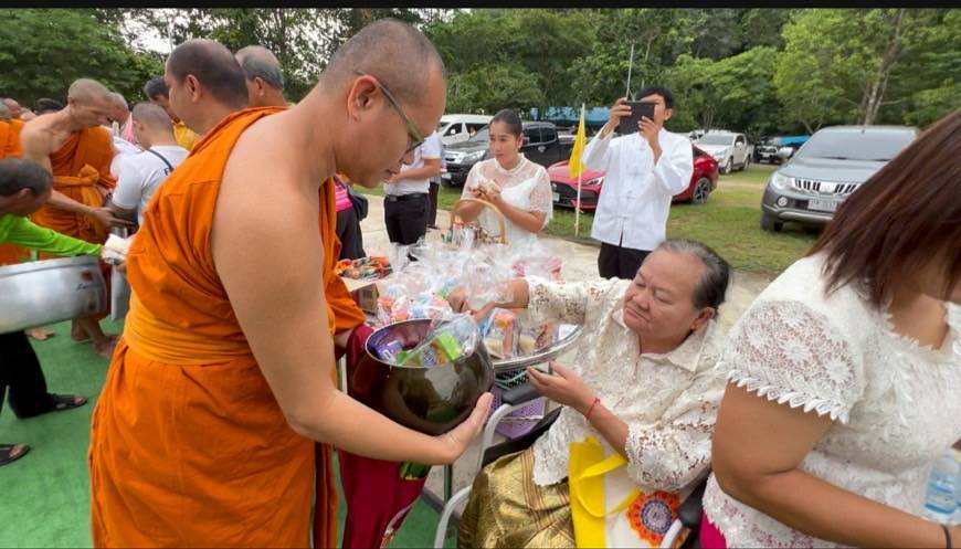 ต่อมาท่านผู้ว่าราชการจังหวัดฉะเชิงเทรา นายชลธี ยังตรง พร้อมนางพัทธานันท์ ยังตรง ประธานแม่บ้านมหาดไทยจังหวัดฉะเชิงเทรา ได้นำตักบาตรข้าวสารอาหารแห้ง โดยคณะพระสงฆ์ได้เดินบิณฑบาตรอบพระอุโบสถ ที่เนืองแน่น ท่านผู้ว่าราชการฯ บอกว่ากิจกรรมวันนี้ทางจังหวัดฉะเชิงเทราจัดขึ้นเป็นประจำต่อเนื่อง นอกจากเป็นการนำทุกภาคส่วน ประชาชนร่วมโครงการผู้ว่าฯ พาเข้าวัด ประชา รัฐ ร่วมใจ ใฝ่รักษาศีล 5 จังหวัดฉะเชิงเทรา ประจำปีงบประมาณ พ.ศ.2567 ยังเป็นการนำข้าสารอาหารแห้งที่ทุกท่านตักบาตร ไปรวบรวมจัดส่งมอบให้กลุ่มเปาะบาง ผู้ป่วยติดเตียง ผู้ยากไร้ ผู้พิการด้วย