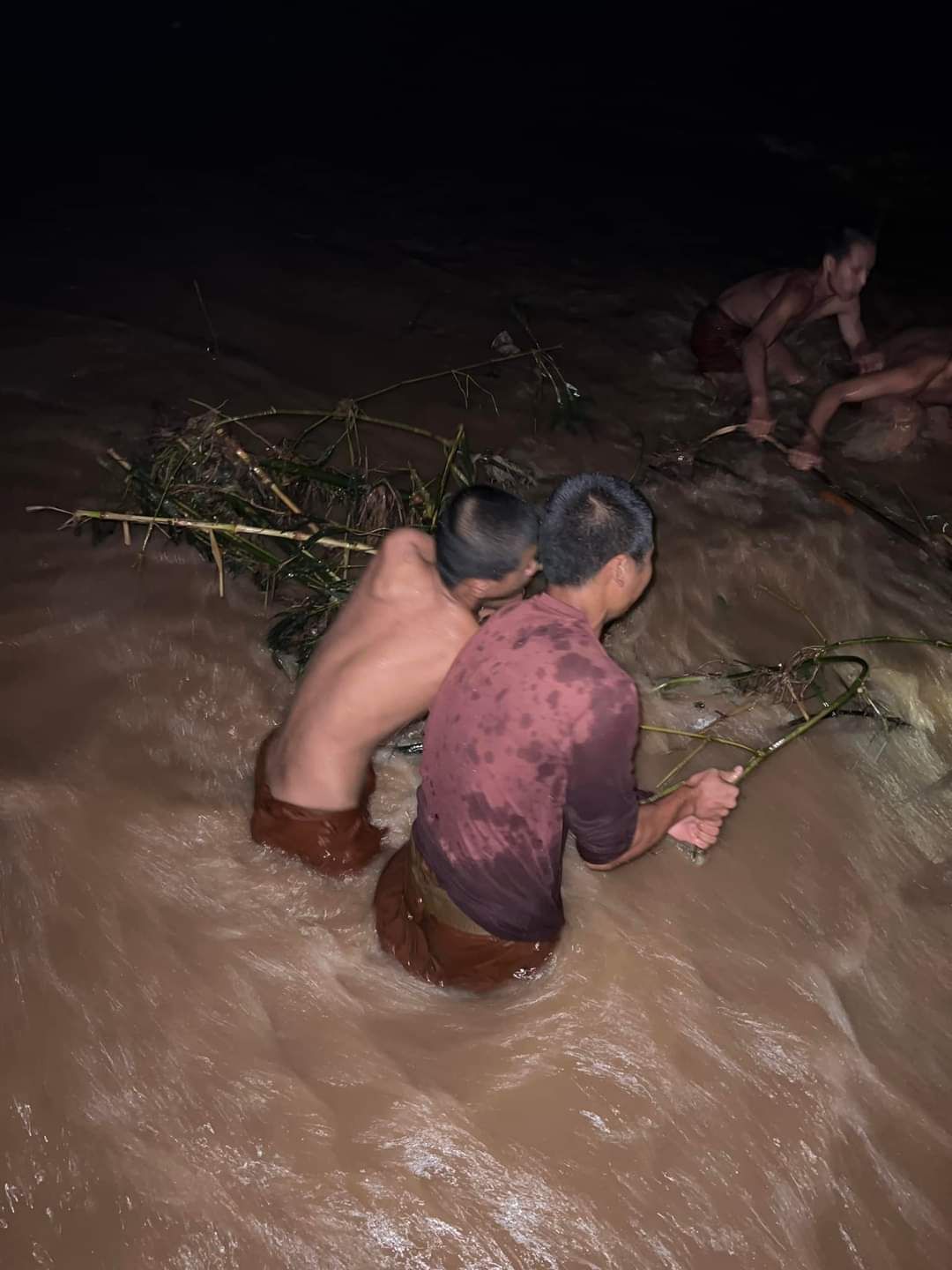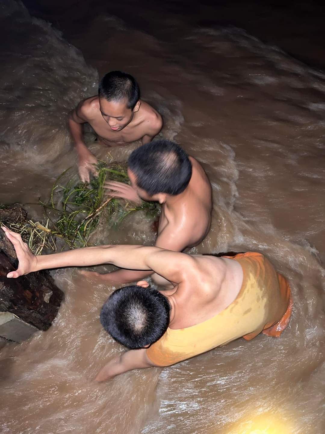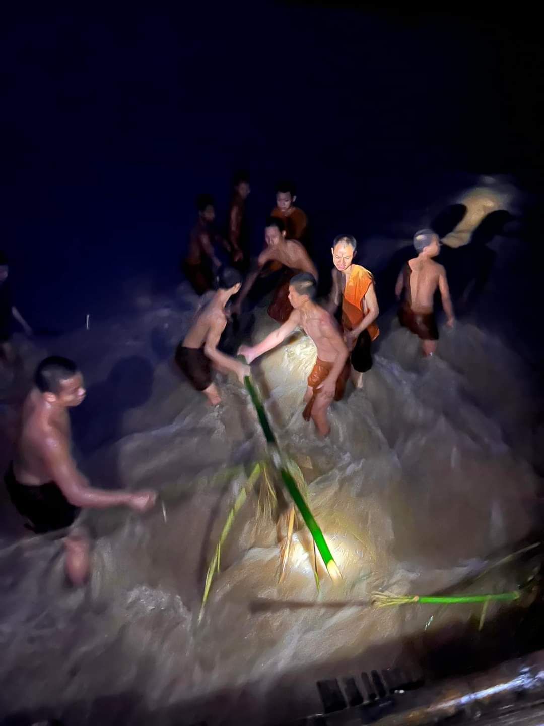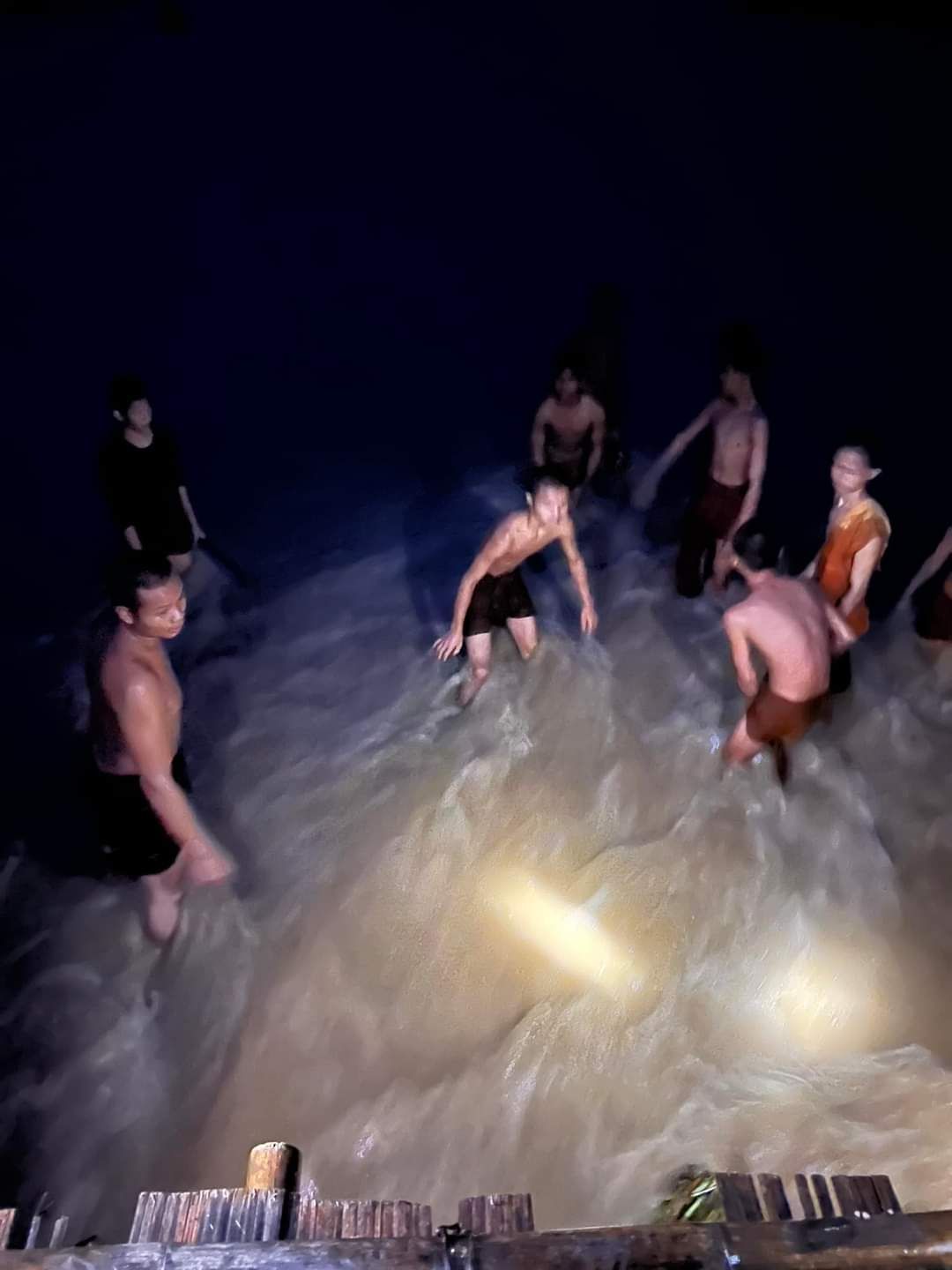 วันที่ 11 กันยายน 2567 เวลา 20.00น. พระเณร วัดภูสมณาราม ช่วยกันดันเศษไม้ที่ไหลมากับน้ำ แล้วมาติดที่สะพาน ออกจากใต้สะพานซูตองเป้ บ้านกุงไม้สัก ต.ปางหมู อ.เมืองแม่ฮ่องสอน ท่ามกลางกระเเสน้ำไหลแรง และผลกระทบจากฝนตกหนัก