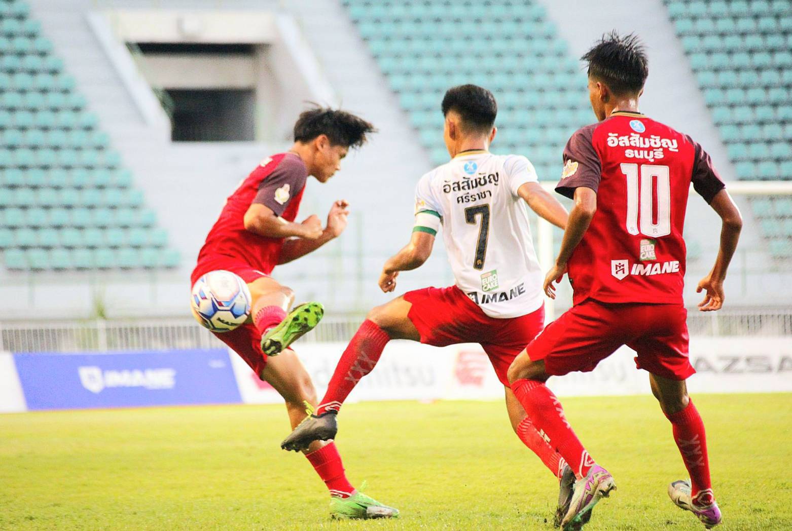 ครึ่งหลัง เกมมาสนุกในช่วงท้ายเกม ท่ามกลางสายฝนที่ตกลงมาอย่างโปรยปราย นาทีที่ 85 อัสสัมชัญธนบุรี ก็มาได้ประตูหนีห่างเป็น 2-0 จากการยิงของ ณัฐชนน เงินท๊อก