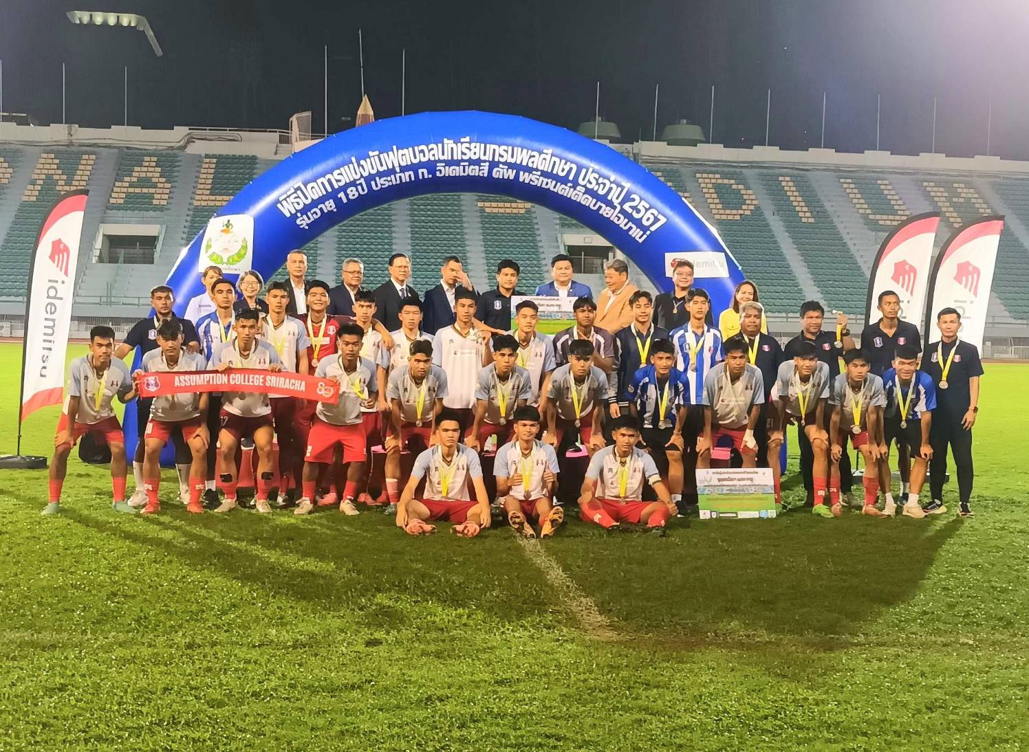 “เจ้าสัวน้อย” อัสสัมชัญธนบุรี ประกาศศักดาทำศึกดาร์บี้แมทช์เบียดชนะ อัสสัมชัญศรีราชา 2-1 คว้าแชมป์ บอลนักเรียน 18 ปี “อิเดมิตสึคัพ” พร้อมถ้วยพระราชทาน สมเด็จพระกนิษฐาธิราชเจ้า กรมสมเด็จพระเทพรัตนราชสุดาฯ สยามบรมราชกุมารี และทุนการศึกษา 100,000 บาท ขณะที่ดาวซัลโว ยิง 8 ประตู ตกเป็นของ “สุวรรณภูมิ เงินหลวง” จากทีมโรงเรียนราชวินิตบางแก้ว