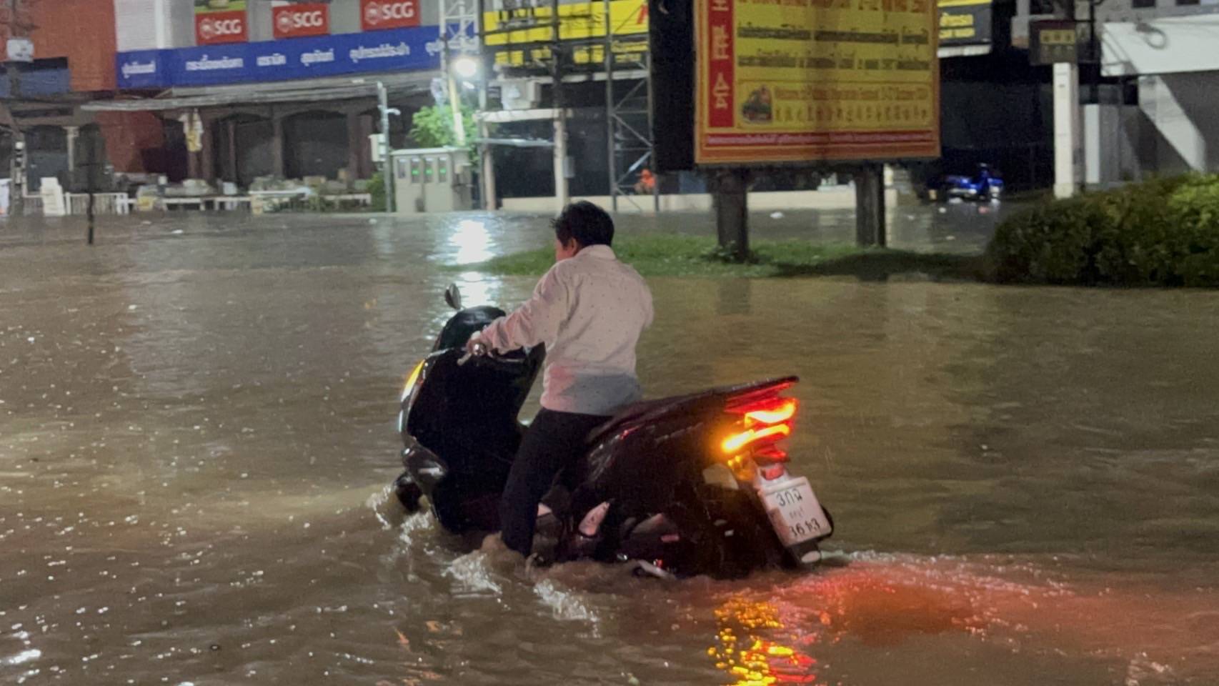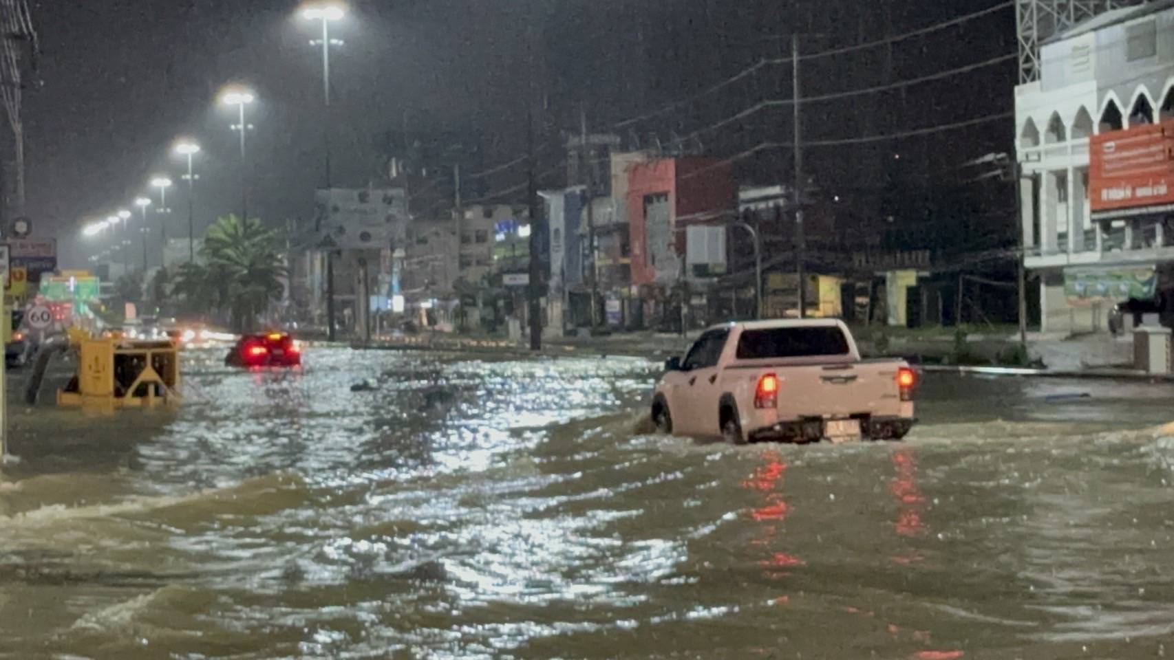 โดยเจ้าหน้าที่กิจการพิเศษเมืองพัทยา นำกำลังมาอำนวยความสะดวก และประชาสัมพันธ์ ประชาชนตามจุดต่างๆ ที่มี มวนน้ำทะลักขึ้นท่วมขังรอการระบาย โดยห้ามรถเล็ก ทั้งรถยนต์และรถจักรยานยนต์สัญจรผ่าน เพื่อหลีกเลี่ยงความเสียหาย รวมไปถึงการป้องกันการเกิดอันตราย ซึ่งมีรถยนต์หลายคัน เลือกที่จะฝากกระแสน้ำแทนการหลีกเลี่ยงไปใช้เส้นทางอื่น ส่งผลให้น้ำเข้าไปในเครื่องยนต์จนรถดับ อยู่กลางมวลน้ำที่ท่วมสูงมิดฝากระโปรงรถ ได้รับความเสียหาย