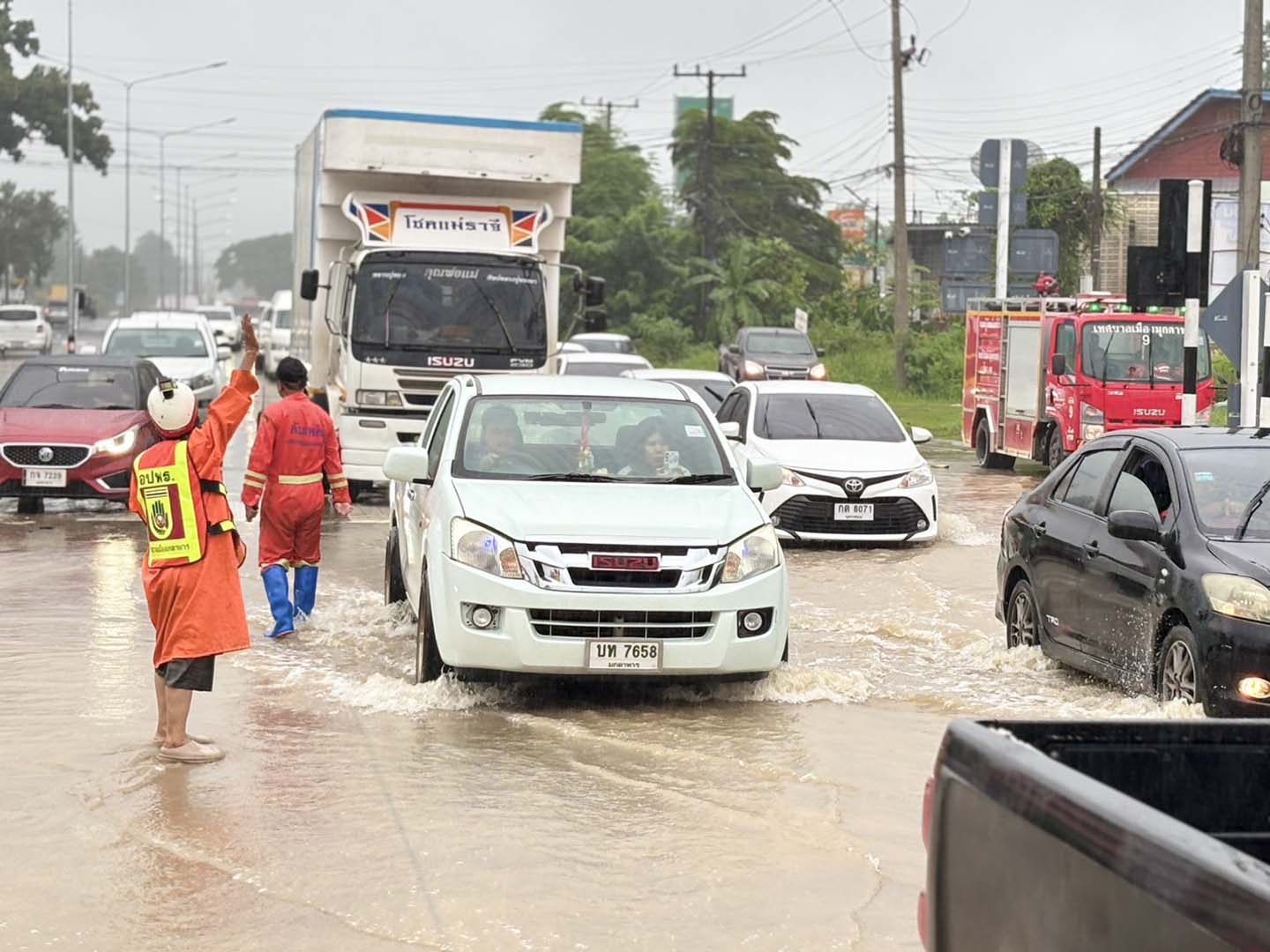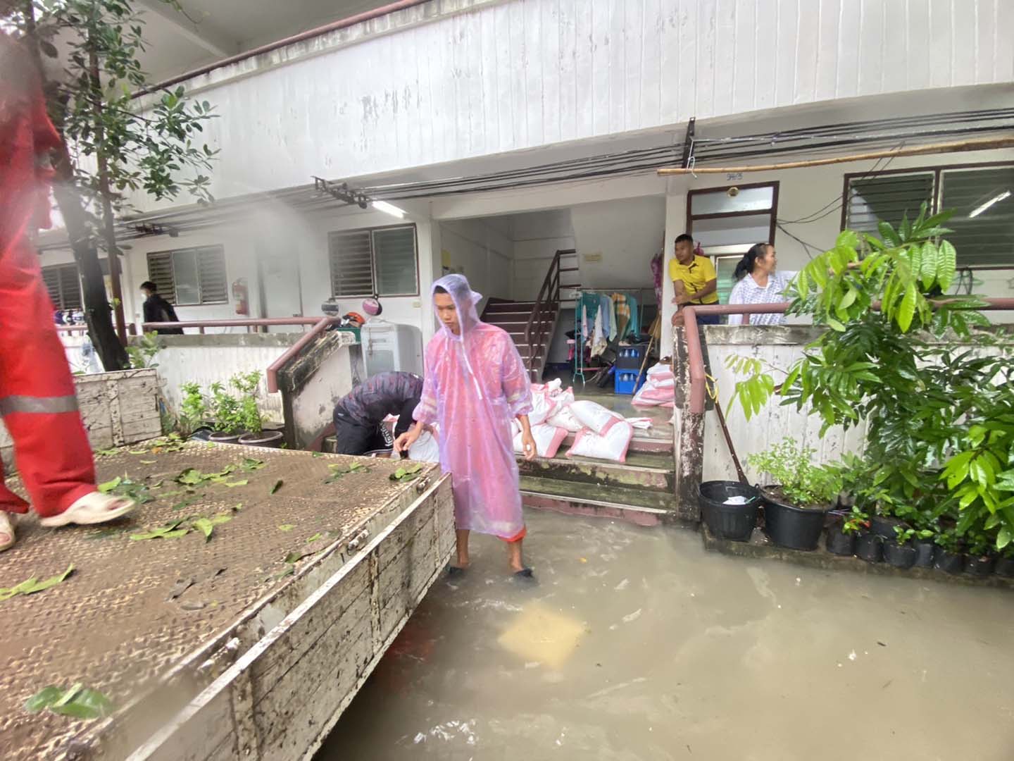 นางสุวรรณี ตั้งปณิธานนท์ นายกเทศมนตรีเมืองมุกดาหาร ได้สั่งการให้ นายอดุล ศิริมันต์ หัวหน้าฝ่ายป้องกันฯ นำกำลังเจ้าหน้าที่ และประสานกำลังเจ้าหน้าที่ สถานีเรือ นรข. และกองบังคับการ 10 กองกำกับการตำรวจน้ำมุกดาหาร ลงพื้นที่เสี่ยงน้ำท่วมบริเวณสี่แยกโรงแรมฮั่วนำ ถึงสามแยกมูลนิธิการกุศลถนนสมุทรศักดารักษ์ ได้วางกระสอบทรายตลอดเส้นทางบริเวณดังกล่าว และได้หยุดการจราจรชั่วคราว ส่วนถนนชาภูบาล หลังศูนย์ราชการ ถนนยุทธพัฒน์ ตลาดสดเทศบาล 1 และสี่แยกไฟแดงคำสายทอง ถนนชยางกูร มีน้ำท่วมขังรถเล็กไม่สามารถสัญจรไปมาได้ ตลอดจนเจ้าหน้าที่ได้นำขยะออกจากปากท่อเพื่อให้น้ำระบายให้เร็วยิ่งขึ้น