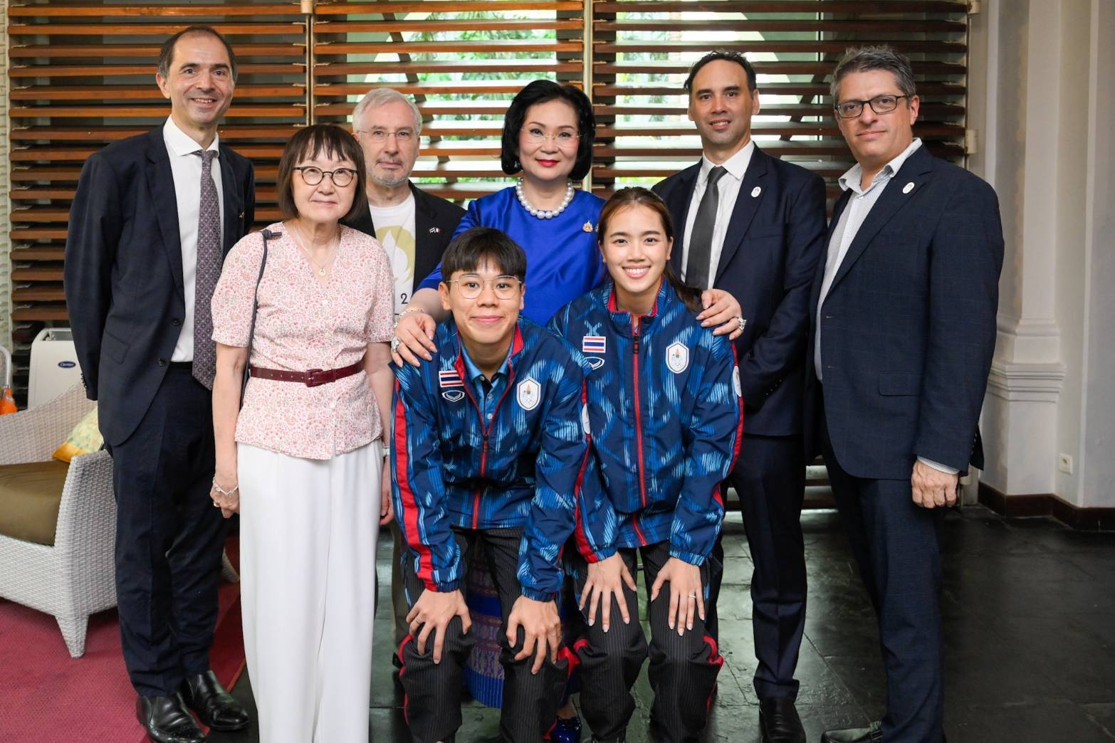 เมื่อช่วงบ่ายวันพุธที่ 2 ต.ค.67 สถานเอกอัครราชทูตฝรั่งเศสประจำประเทศไทย ที่ ซ.เจริญกรุง 36 (ถนนแบรสต์) ได้มีการจัดงานเลี้ยงต้อนรับเพื่อเป็นการฉลองความสำเร็จในการแข่งขันโอลิมปิก ครั้งที่ 33 และ พาราลิมปิกเกมส์ ครั้งที่ 17 ที่กรุงปารีส ประเทศฝรั่งเศส โดยมี นายฌ็อง-โกลด ปวงเบิฟ เอกอัครราชทูตสาธารณรัฐฝรั่งเศสประจำประเทศไทย และ นางมาริโกะ ปวงเบิฟ ภริยาเอกอัครราชทูตฯ ให้การต้อนรับ