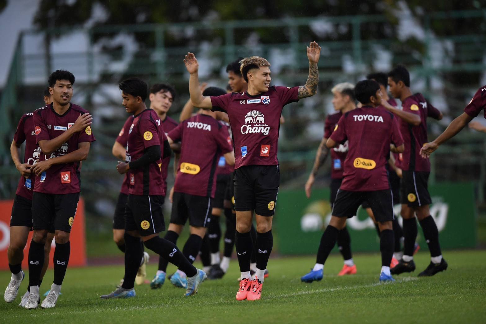 ก่อนการฝึกซ้อม โจนาธาร เข็มดี กองหลังทีมชาติไทย กล่าวว่า "ความมั่นใจตอนนี้ถือว่าดีครับ เรามีทีมที่ดีมาก คิดว่าเราจะทำผลงานออกมาได้ดี สภาพอากาศที่นี่มีผลต่อเรานิดหน่อย มีฝนตกลงมา เมื่อวานก็ซ้อมไม่ได้ ต้องวิ่งเพื่อเพิ่มความฟิต "