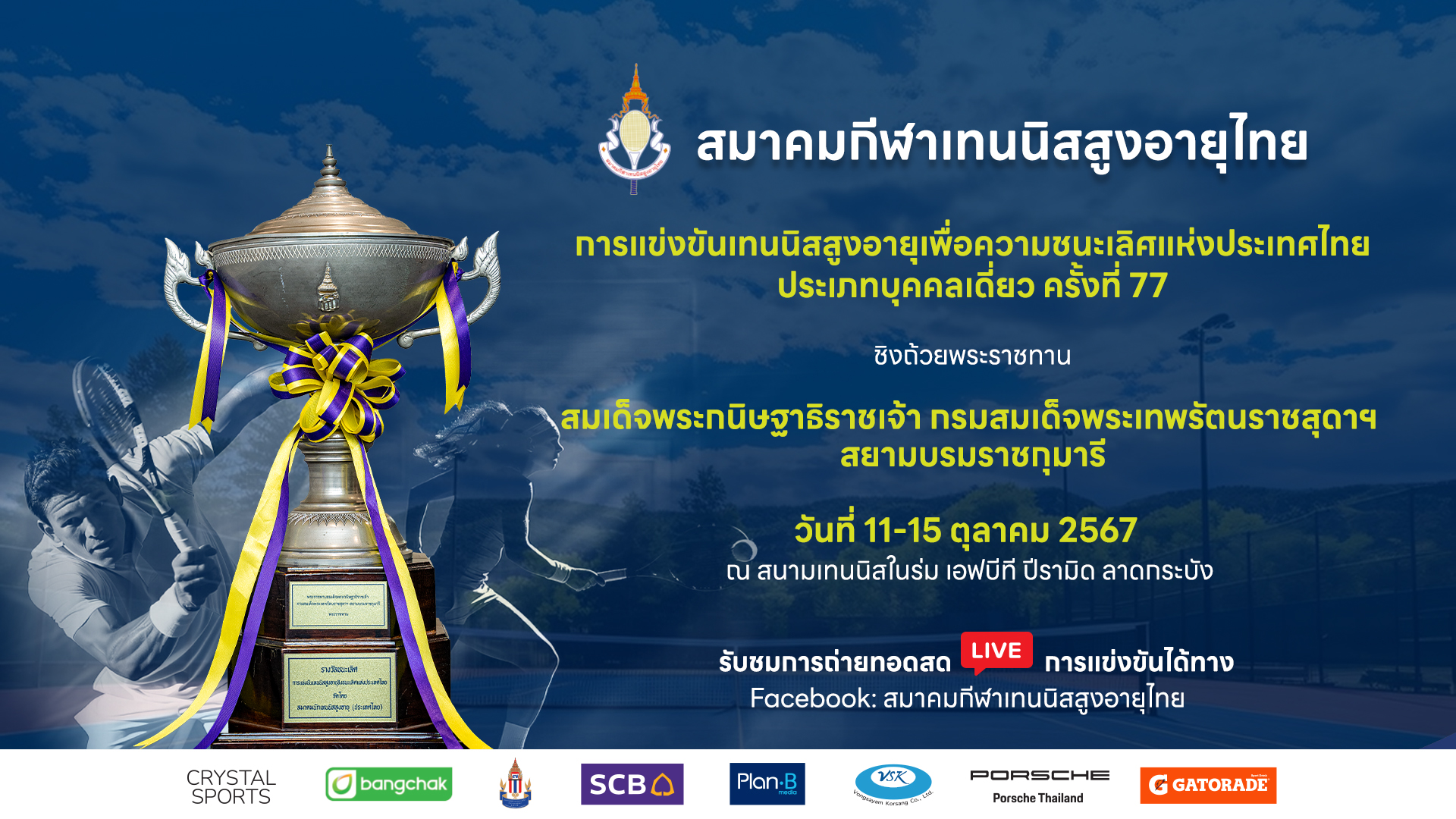 สมาคมกีฬาเทนนิสสูงอายุไทย ตระหนักถึงความนิยมและความสนใจในการเล่นกีฬาเทนนิส ซึ่งทำให้วงการเทนนิสไทยกลับมาคึกคักอีกครั้ง จึงไม่หยุดยั้งที่จะส่งเสริมและพัฒนากีฬาชนิดนี้ ด้วยการจัดรายการ “การแข่งขันเทนนิสสูงอายุเพื่อความชนะเลิศแห่งประเทศไทย ประเภทบุคคลเดี่ยว ครั้งที่ 77 ชิงถ้วยพระราชทานสมเด็จพระกนิษฐาธิราชเจ้า กรมสมเด็จพระเทพรัตนราชสุดาฯ สยามบรมราชกุมารี” สำหรับนักเทนนิสทั่วประเทศที่มีอายุ 30 ปีขึ้นไป เพื่อสนับสนุนการออกกำลังกาย และเสริมทักษะด้านกีฬาเทนนิส ซึ่งถือเป็นการช่วยส่งเสริมในการเตรียมความพร้อมให้ผู้สูงอายุมีสุขภาพดี แข็งแรงทั้งร่างกายและจิตใจ มีคุณภาพชีวิตที่ดี มีกิจกรรมที่สร้างสรรค์ทำร่วมกันนำไปสู่สังคมที่ดีขึ้น