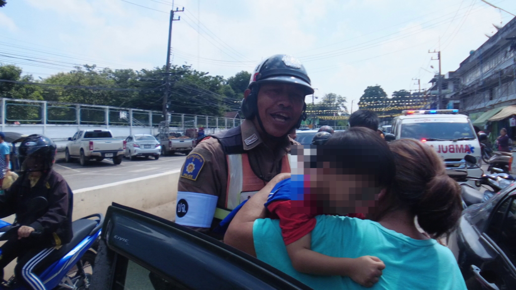 ในที่เกิดเหตุ พบรถยนต์เก๋งฮอนด้า ซีวิค สีเทา หมายเลขทะเบียน กง 9766 ปราจีนบุรี จอดติดเครื่องยนต์อยู่บริเวณช่องทางเดินรถด้านซ้าย ภายในรถพบเด็กชายวัย 2 ขวบเศษอยู่ในรถ โดยไม่ได้มีอาการตกใจอย่างใด โดยมีนางธัญญ์นิภา พรมมินทร์ อายุ 62 ปี ชาวอำเภอเมืองปราจีนบุรี เป็นเจ้าของรถ และเป็นยายของน้องออร์ก้า กำลังช่วยกันเรียกให้น้องปลดล็อคประตู เจ้าหน้าที่กู้ภัยฯจึงได้ใช้อุปกรณ์ในการเปิดประตู ใช้เวลาประมาณ 5 นาที จึงสามารถเปิดประตูรถได้ และนำน้องออร์ก้าออกมาได้อย่างปลอดภัย