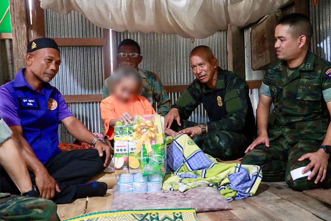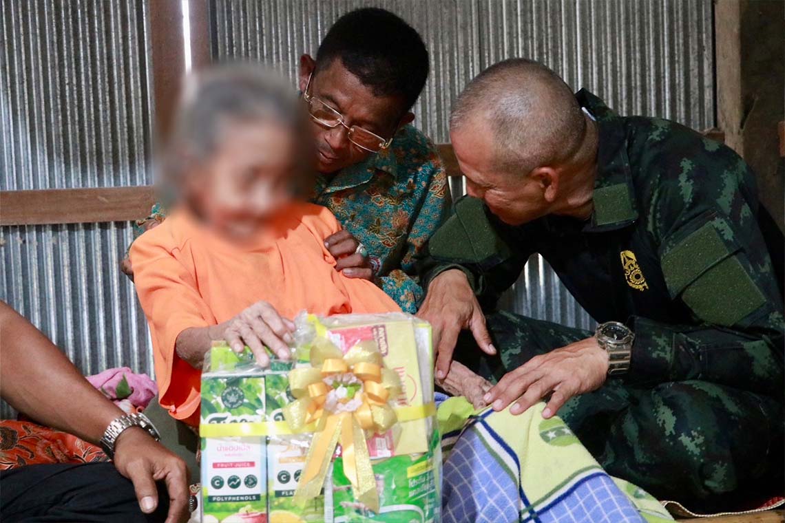 พลตรี เฉลิมพร ขำเขียว ผู้บัญชาการกองพลทหารราบที่ 15 / ผู้บังคับหน่วยเฉพาะกิจนราธิวาส / ผู้บังคับกองบังคับการควบคุมสุริโยทัย ลงพื้นที่เยี่ยมเยียนให้กำลังใจ พร้อมทั้งสอบถามอาการเจ็บป่วย สภาพความเป็นอยู่ของผู้ป่วยติดเตียง คือ นางเยาะ มะและ อายุ 91 ปี เป็นโรคชรา ทางบ้านมีฐานะยากจน ซึ่งพักอาศัยอยู่หมู่ที่ 9 บ้านโคกชุมบก ตำบลเกาะสะท้อน อำเภอตากใบ จังหวัดนราธิวาส