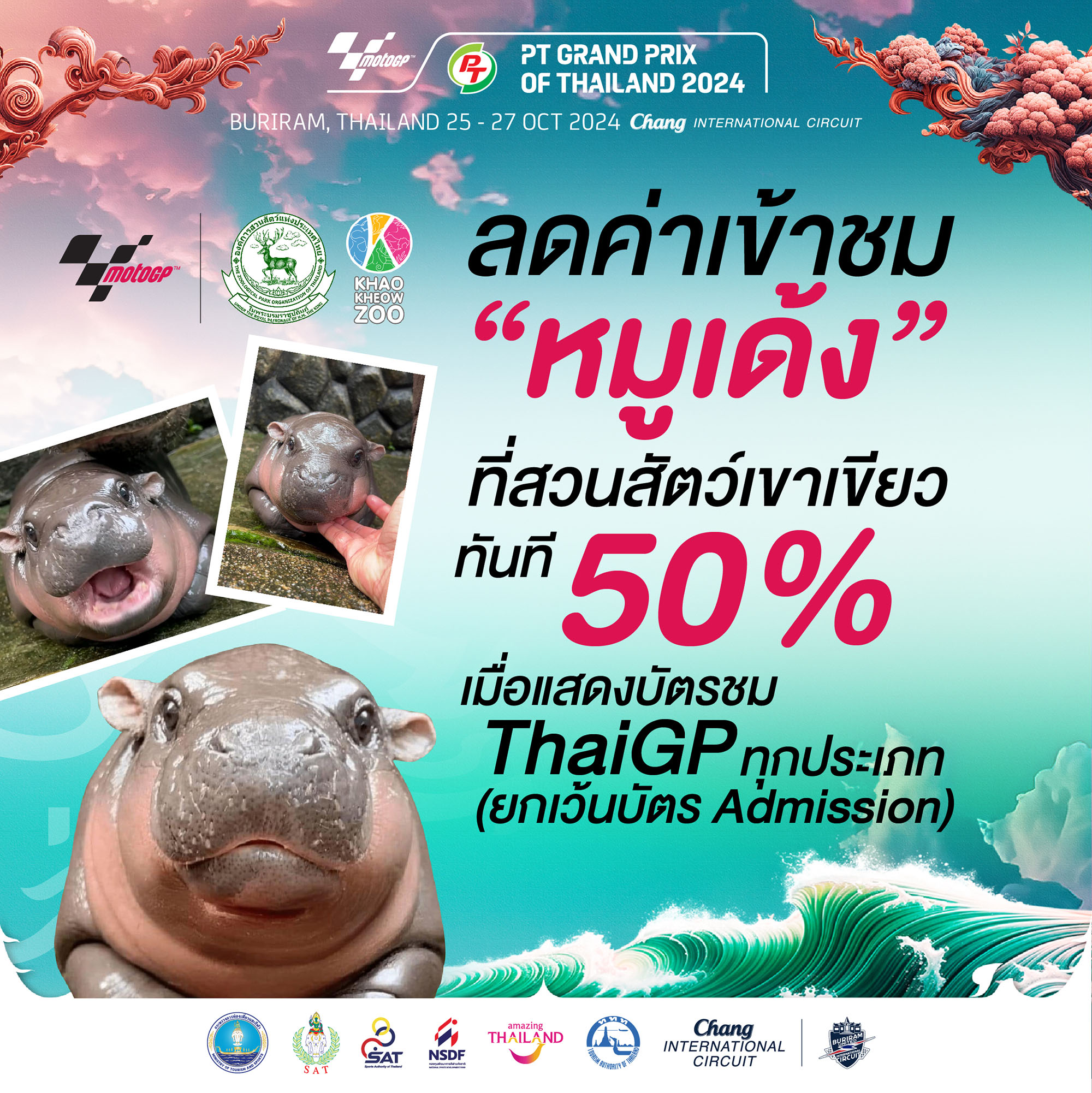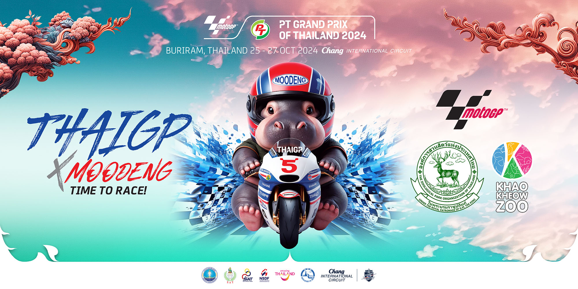 โดยฝ่ายจัดการแข่งขัน ร่วมกับดอร์น่า สปอร์ต และสวนสัตว์เปิดเขาเขียว องค์การสวนสัตว์แห่งประเทศไทย ตัดสินใจนำ “หมูเด้ง” ซูเปอร์สตาร์แก้มชมพูสู่โลกมอเตอร์สปอร์ต คอลแลบกันภายใต้แคมเปญ ThaiGP x MOODENG โอกาสสุดพิเศษสำหรับแฟนความเร็วที่มีบัตรโมโตจีพี สนามประเทศไทยเท่านั้น