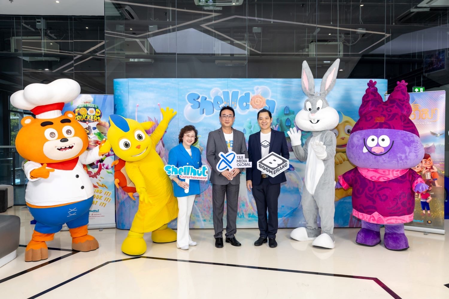 T&B Media Global (ประเทศไทย) โดย ดร.ชวัลวัฒน์ อริยวรารมย์ ประธานกรรมการบริหารและผู้ก่อตั้ง บริษัท T&B Media Global (Thailand) จำกัด จับมือ บริษัท เอ็มซีเอ็น (โกลบอล) จำกัด โดย “คุณพรพจน์ เลาหสุขเกษม” กรรมการผู้จัดการ ช่อง Boomerang 89 นำการ์ตูนระดับโลก “เชลล์ดอน หอยกู้โลก” กลับมาให้เด็กๆได้ชมอีกครั้งสนุกสนานพร้อมกับการเรียนรู้เรื่องการอนุรักษ์สิ่งแวดล้อมทางทะเล พร้อมกับนำ “ซอนนี่ เชฟป่วนก๊วนอร่อย” เป็นเรื่องราวการผจญภัยสุดบ้าบิ่นของสามเกลอเพื่อนรัก ที่ออกเดินทางไปทั่วโลกพร้อมกับ รถขายอาหารมีชีวิต เพื่อตามหาวัตถุดิบสุดแสนพิสดารมาทำอาหารจานพิเศษโดยทั้งสองเรื่องมีโปรแกรมฉายทางช่อง Boomerang 89 เชลล์ดอน ออกอากาศทุกวันเสาร์ - อาทิตย์ เวลา 07:00 น. และเวลา 13:00 น. “ซอนนี่ เชฟป่วนก๊วนอร่อย” ออกอากาศทุกวันเสาร์ - อาทิตย์ เวลา 10:00 น. และเวลา 15:30 น. เริ่มออกอากาศ วันเสาร์ที่ 2 พฤศจิกายน นี้