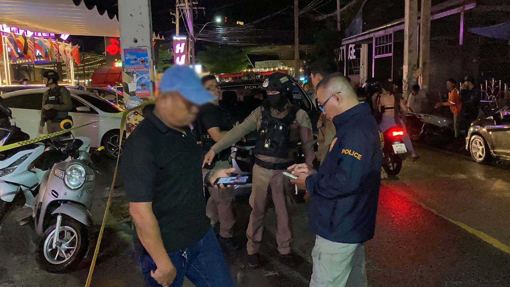 เบื้องต้นพ.ต.ต.สุธีรพันธ์ ทาปศรี สว.สอบสวน สภ.เมืองพัทยา สอบถามพยานแวดล้อม และบันทึกภาพที่เกิดเหตุเป็นหลักฐาน พร้อมสั่งการให้เจ้าหน้าที่ตำรวจชุดสืบสวน หาเบาะแสจากกล้องวงจรปิด เพื่อแกะรอยตามหาทั้งผู้บาดเจ็บ ซึ่งยังไม่รู้ว่าถูกอาวุธปืนยิงหรือไม่ และผู้ก่อเหตุในเหตุการณ์นี้ มาดำเนินคดีตามกระบวนการทางกฎหมายต่อไป