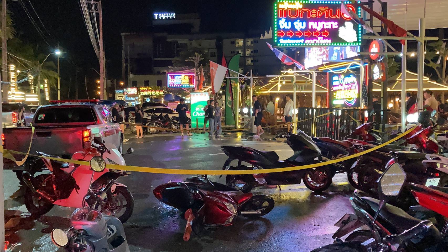 เมื่อเวลา 04.06 น.วันที่ 30 ตุลาคม 2567 ร.ต.อ.วุฒิกรณ์ ปลอดโปร่ง รอง สวป.สภ.เมืองพัทยา รับแจ้งเหตุมีคนใช้อาวุธปืนยิงกัน เหตุเกิดบริเวณหน้าร้านหมูกระทะแบกกับดินสาม ถนนเส้นเพชรตระกูล เมืองพัทยา ต.หนองปรือ อ.บางละมุง จ.ชลบุรี หลังรับแจ้งจึงรายงานผู้บังคับ พ.ต.อ.นาวิน ธีระวิทย์ ผกก.สภ.เมืองพัทยา พร้อมนำกำลังเจ้าหน้าที่ตำรวจสายตรวจเขต เจ้าหน้าที่ชุดสืบสวนสภ.เมืองพัทยา รีบไปตรวจสอบ