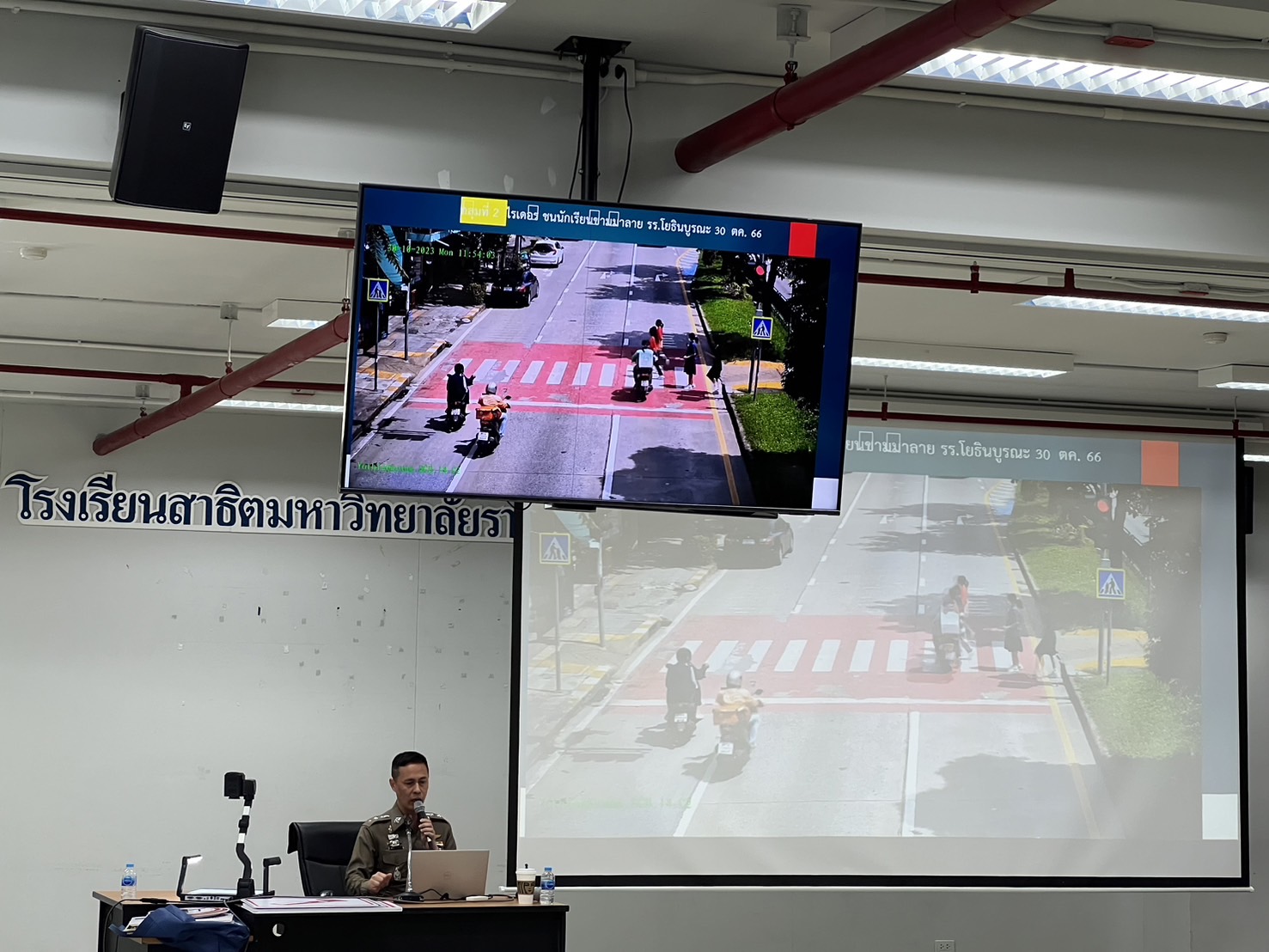 พล.ต.ต.ธวัช วงศ์สง่า รองผู้บัญชาการตำรวจนครบาล (รับผิดชอบงานจราจร) มอบหมายให้ พ.ต.อ.สรพงษ์ นาคะโยคี ผู้กำกับการฝ่ายอำนวยการ กองบังคับการตำรวจจราจร นำทีมวิทยากร จาก กองบังคับการตำรวจจราจร มาอบรมเชิงปฏิบัติการให้แก่ นักเรียนชั้น ม.3 รร.สาธิตมหาวิทยาลัยรามคำแหง ในหัวข้อ “ทักษะการเอาตัวรอด และรับมือเหตุฉุกเฉินบนรถโดยสาร“ ในโอกาสที่โรงเรียนฯจะนำนักเรียนไปทัศนศึกษาในวันที่ 9-11 พ.ย. 67และยังได้นำรถบัสมาสาธิตขั้นตอนและวิธีใช้งานอุปกรณ์ที่อยู่ภายในรถ ว่ามีอะไรบ้างและต้องใช้งานแบบไหน