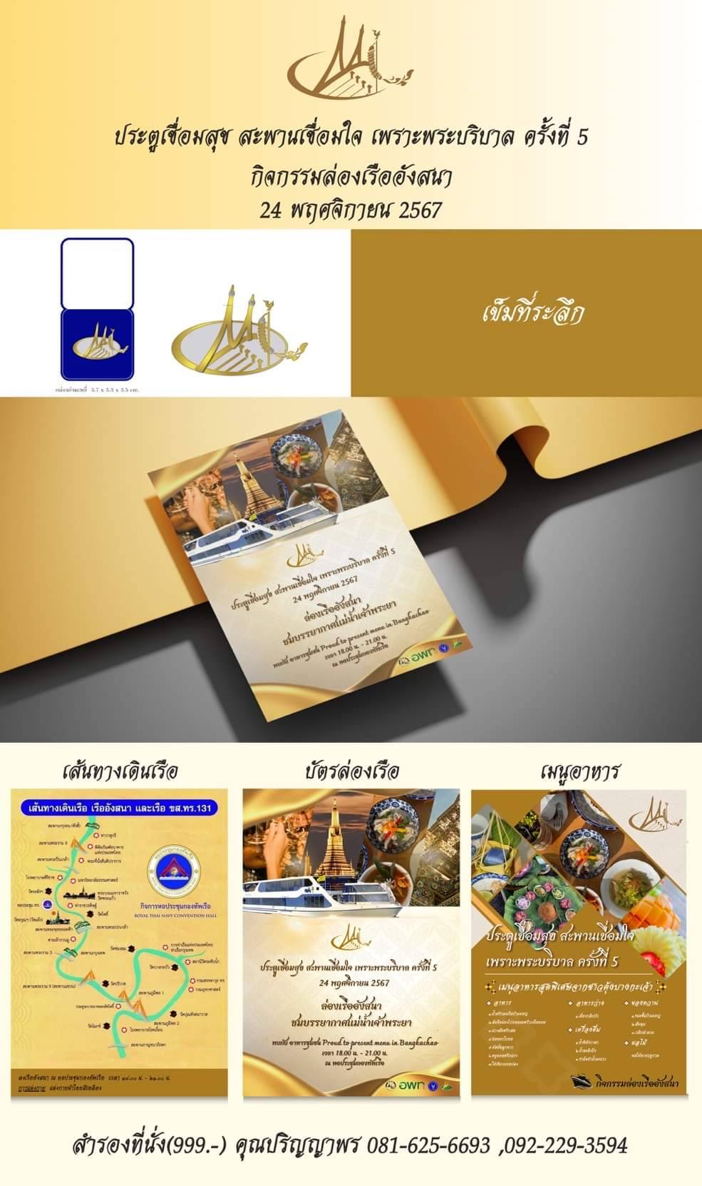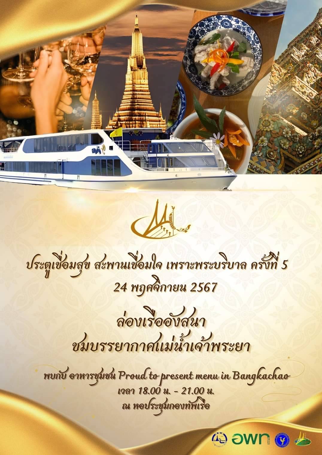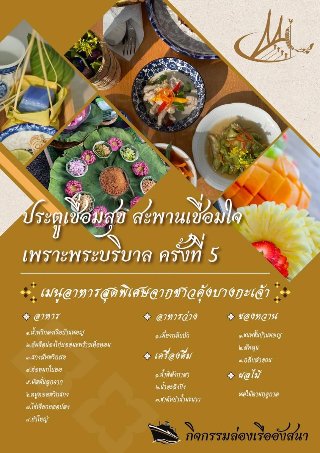วันที่ 24 พฤศจิกายน 2567 เวลา 18.00 – 21.00 น. กิจกรรมล่องเรืออังสนา ขึ้นลงเรือ ณ ท่าเรือหอประชุมกองทัพเรือ กรุงเทพฯ ตามรอยเสด็จในหลวงรัชกาลที่ 9 ครั้นทรงเสร็จพระราชดำเนินทางชลมารคเพื่อทรงเปิดประตูระบายน้ำคลองลัดโพธิ์ รวมทั้งสะพานภูมิพล 1 และสะพานภูมิพล 2 ติดต่อจองบัตรฯ ได้ที่ชมรมส่งเสริมการท่องเที่ยวโดยชุมชน ตำบลทรงคะนอง โทร. 0816256693 , 0922293594 (บัตรมีจำนวนจำกัด)