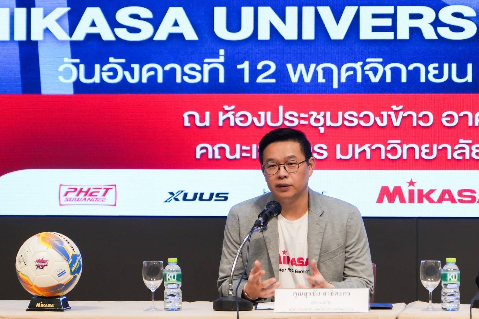 เมื่อวันที่ 12 พฤศจิกายนที่ผ่านมา ได้มีการจัดงานแถลงข่าวและจับสลากการแข่งขันฟุตบอลรายการ “MIKASA UNIVERSITY CUP 2024“ โดยมี คุณสุรชัย สาธิตะกร ผู้จัดการทั่วไป บริษัท มิกาซ่า อินดัสตรี้ส์ (ประเทศไทย) จำกัด ผู้ช่วยศาสตราจารย์ รัชด ชมภูนิช รองอธิการบดีฝ่ายกิจการนิสิตและพัฒนาอย่างยั่งยืน มหาวิทยาลัยเกษตรศาสตร์ ”โค้ชโย่ง“ วรวุธ ศรีมะฆะ ประธานจัดการแข่งขัน ร่วมแถลงข่าวในครั้งนี้ ที่ห้องประชุมรวงข้าว อาคารวชิรานุสรณ์ มหาวิทยาลัยเกษตรศาสตร์ บางเขน