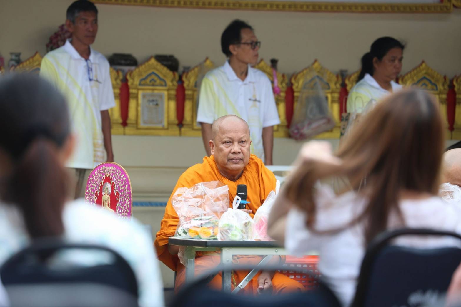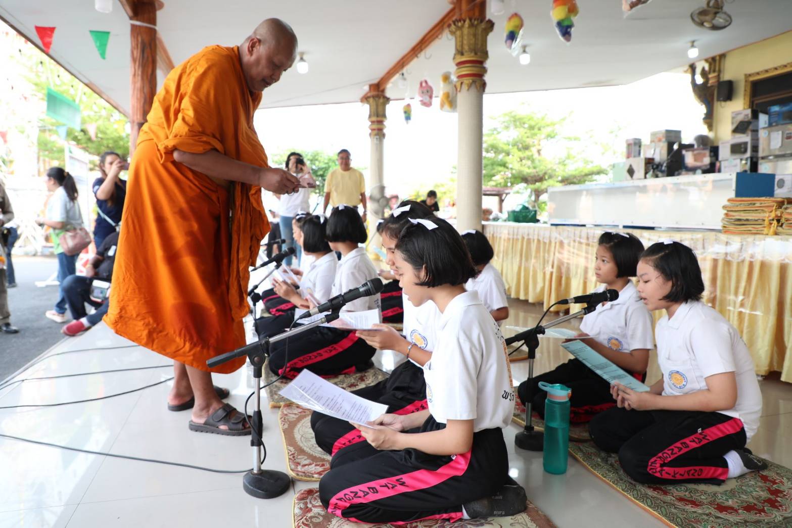 โดยท่านพระครูปลัดสุวัฒนศีลคุณ ดร.เจ้าอาวาสวัดบางพลีใหญ่กลาง ได้กล่าวว่า กิจกรรมทำบุญตักบาตรทางน้ำบริเวณสระกลางน้ำวิหารหลวงปู่กิ่มนี้ ทางวัดบางพลีใหญ่กลาง ร่วมกับคณะสงฆ์ ไวยาวัจกร และคณะกรรมการวัดบางพลีใหญ่กลาง ได้จัดขึ้นเป็นประจำทุกปี โดยจะกำหนดให้มีการพิธีบุญตักบาตรข้าวสาร อาหารแห้ง ในช่วงเช้าของวันลอยกระทง มอบทุนการศึกษาให้แก่นักเรียนโรงเรียนวัดบางพลีใหญ่ จำนวน 120 ทุน ทุนละ 500 บาท เพื่อเป็นขวัญและกำลังใจให้แก่นักเรียน ได้ตั้งใจศึกษาเล่าเรียน เพื่อที่จะได้เติบโตไปเป็นคนดีเป็นกำลังในการพัฒนาประเทศชาติบ้านเมืองต่อไป
