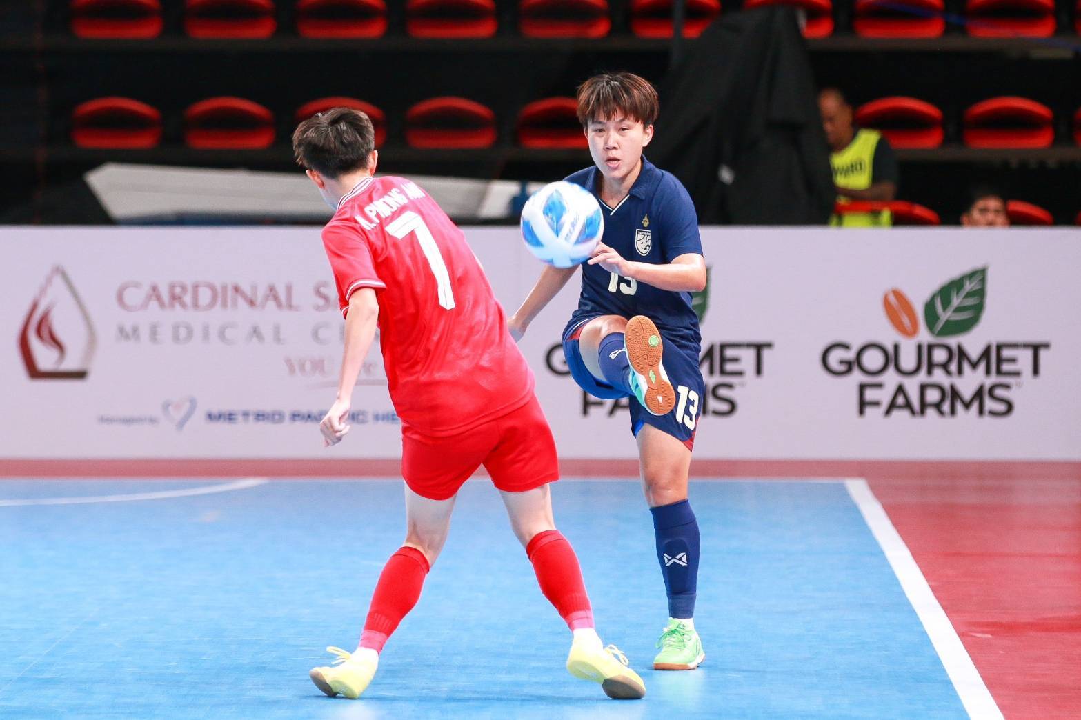 นาที 13 เป็น อารียา แซ่เติ่น ที่ได้บอลหน้าเขตโทษก่อนกลับตัวยิงด้วยซ้าย แต่ไปติดเซฟของโง เหงียน ธุย ลินห์ อีกครั้ง