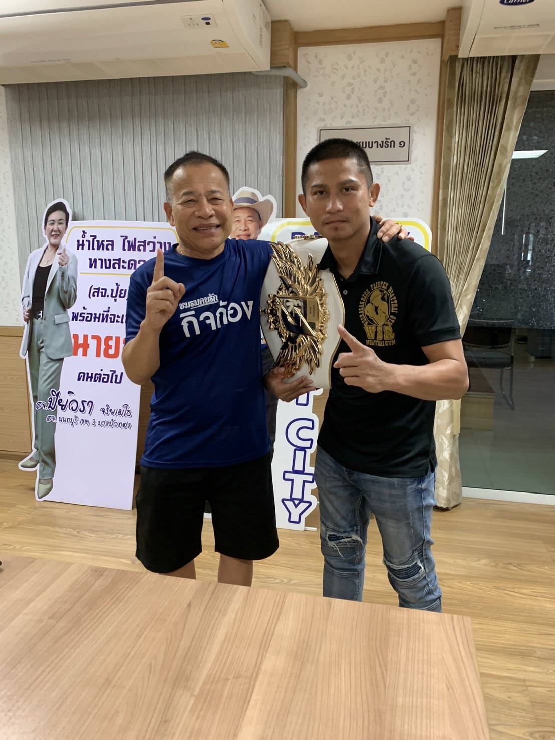 หลังจาก แก้ว วีระศักดิ์เล็ก ได้รับชัยชนะกลับมาจากปะเทศจีน ในรายการคิ็กบ็อกซิิ่งดังกล่าวแล้ว พี่ตู่ วีระศักดิ์เล็ก วงศ์ประเสริฐพร้อมคณะ ได้นำ แก้ว วีระศักดิ์เล็ก เข้าพบ ดร.กิจก้อง นาคทั่ง นายกเทศมนตรี ตำบลบางรักพัฒนา ที่เทศบาลอำเภอบางบัวทอง จังหวัดนนทบุรี เพื่อขอความร่วมมือเรื่องการพัฒนาพร้อมการสนับสนุน ค่ายมวย วีระศักดิ์เล็กมวยไทยยิมอย่างต่อเนื่องต่อไป